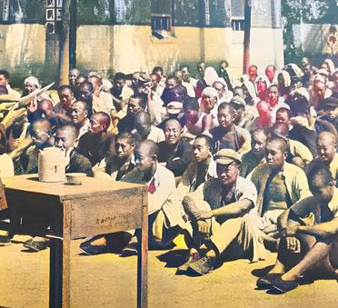 这是五十年代监狱中女犯人在进行劳动。她们留着统一的发型,穿着统一的衣服,看起来利索麻利。在监狱中,她们仍然可以为社会创造价值。当她们出狱后,凭着在监狱中学到的手艺,也可以很快投入到工作中。 尤其女犯人更需要一门能傍身的手艺。除了在监狱中进行生产劳动,她们还会参加识字扫盲运动。当她们走出社会后甚至比那些不认识字的女子更容易找到工作。因为,这时中国女子的文盲率达到百分之九十以上。女子只要认识一些字就可以找到一个不错的工作。 相比女犯人,男犯人要参加重体力劳动。他们常到农场、砖厂与矿山等地进行重体力劳动。直到改革开放后,重体力劳动转向技术性与轻工业型劳动。当然,“踩缝纫机”也成为“监狱服刑”的代称。