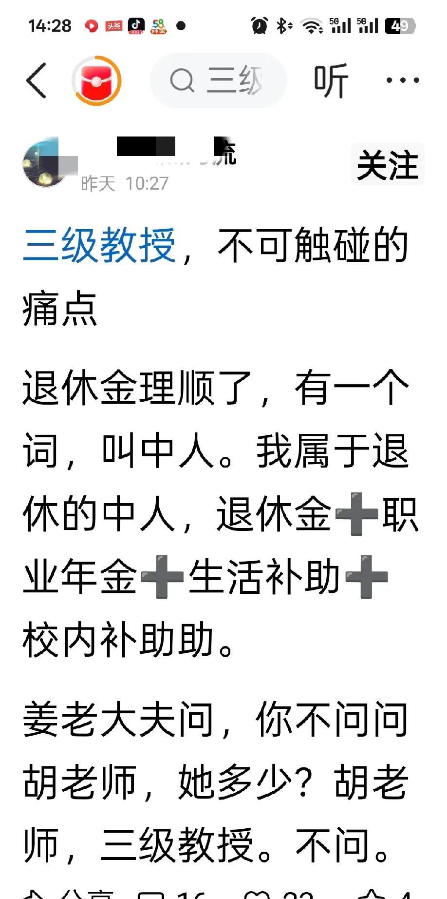 退休金理顺了,有一个词叫中人。我属于退休的中人,退休金+职业年金+生活补贴+校内
