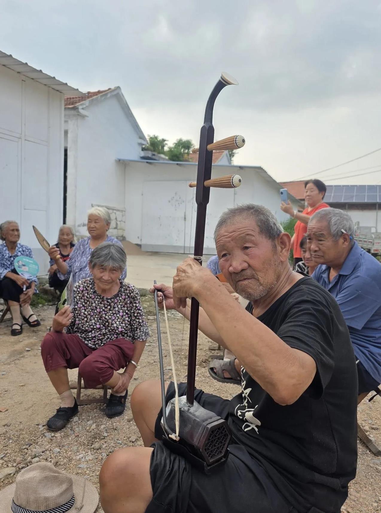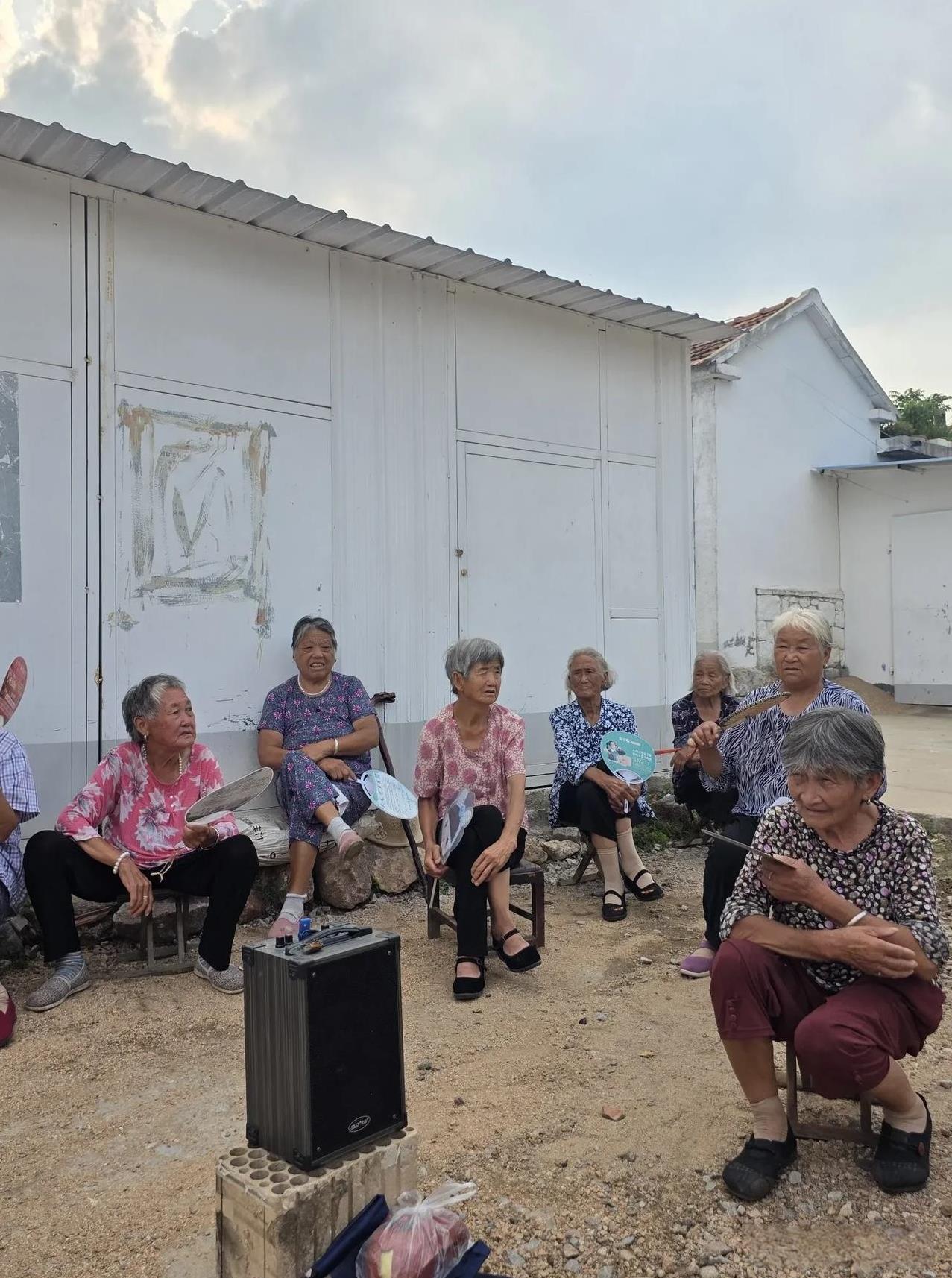 嫂子、婶子、奶奶们告诉我一个道理:贫瘠的文化土壤里,生长着顽强的文化精神…… 村里的条件实在有限,甚至连基本的文化设施都没有,更谈不上娱乐中心、音响设备了。喜欢唱歌的嫂子、婶子、奶奶们,听到电视或者广播里那首歌好听,就想方设法找来歌词自学,一个人学会了,一群人就学会了,这样自然谈不上准确,但这又怕什么呢?反正是自娱自乐的事情。 今天36度,午后3点依然炙热,原以为这么热的天,嫂子、婶子、奶奶们不会出来了,没想到我4点钟过去时,她们都在,而且已经出来一个小时了。 在一起唱唱歌,会不会不要紧,对不对也不要紧,只要想唱就唱,不会唱拿着话筒说两句也行,就是锻炼每个人在父老乡亲面前说话的勇气。 村里有很多嗓子很好,而且也爱好音乐的人,可惜他们没有条件,别说专业学习、专业指导,就连音乐课都没有上过。但是他们对音乐十分敏感,有些歌听几遍就学会了。 这几天她们在复习一首老歌,这是一首民间小调《十二月姑娘坐绣房》,十几年前她们唱过,那天她们哼唱,我说这歌好听,于是她们决定好好复习复习、练习练习,然后让我录下来。