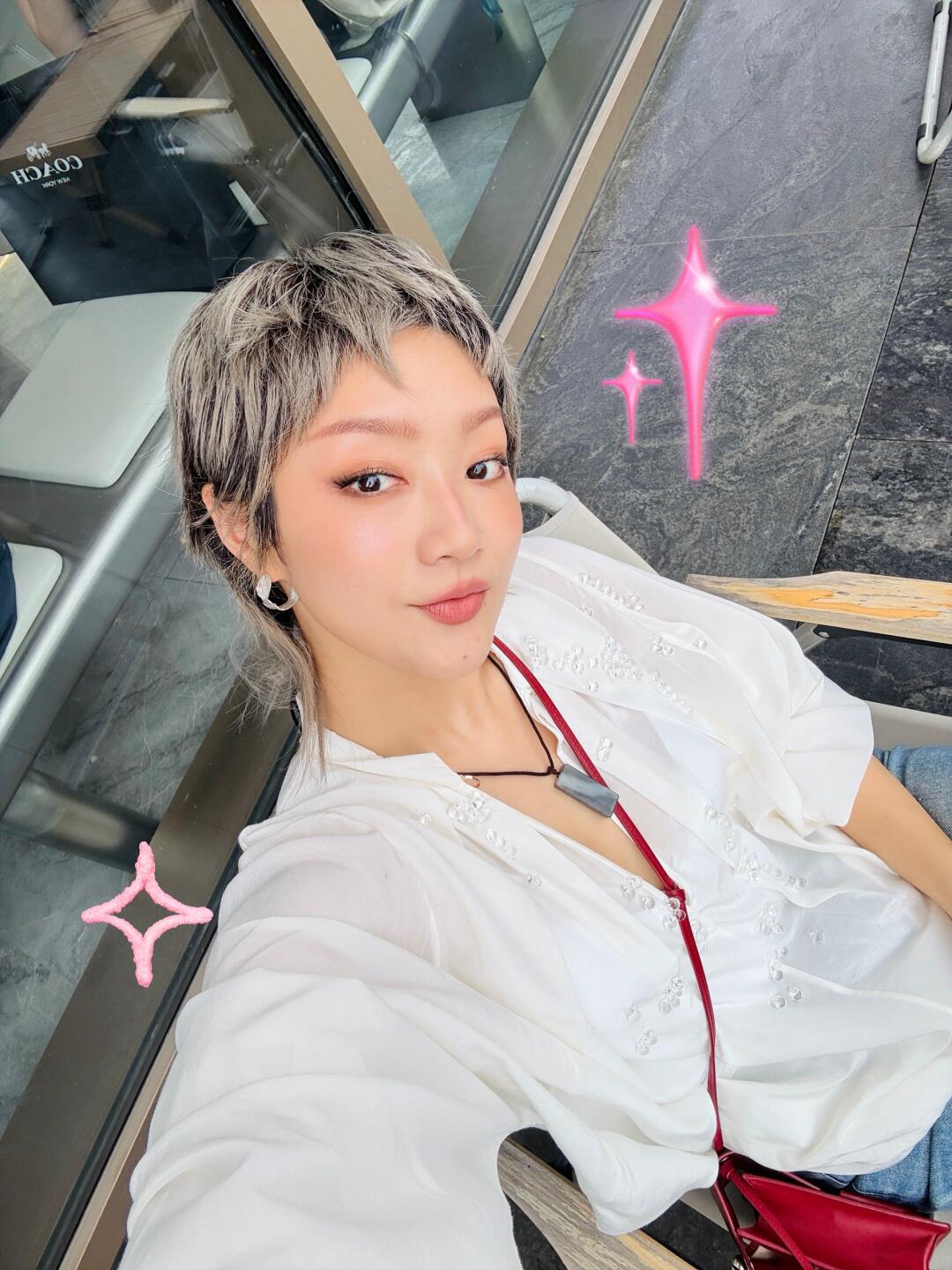 吴艳妮在成都穿着短裤大腿看起来很粗壮,表情自信又张扬