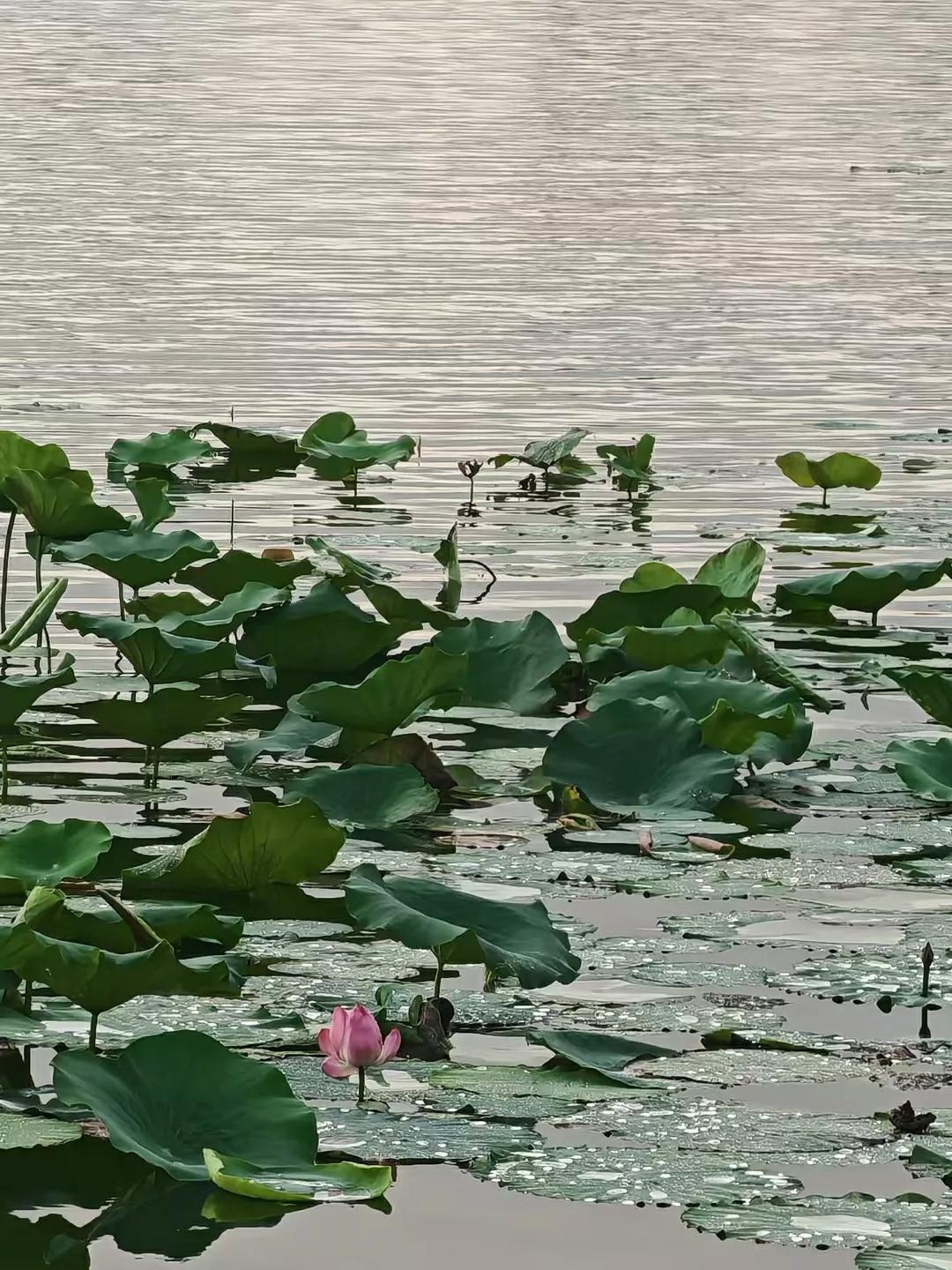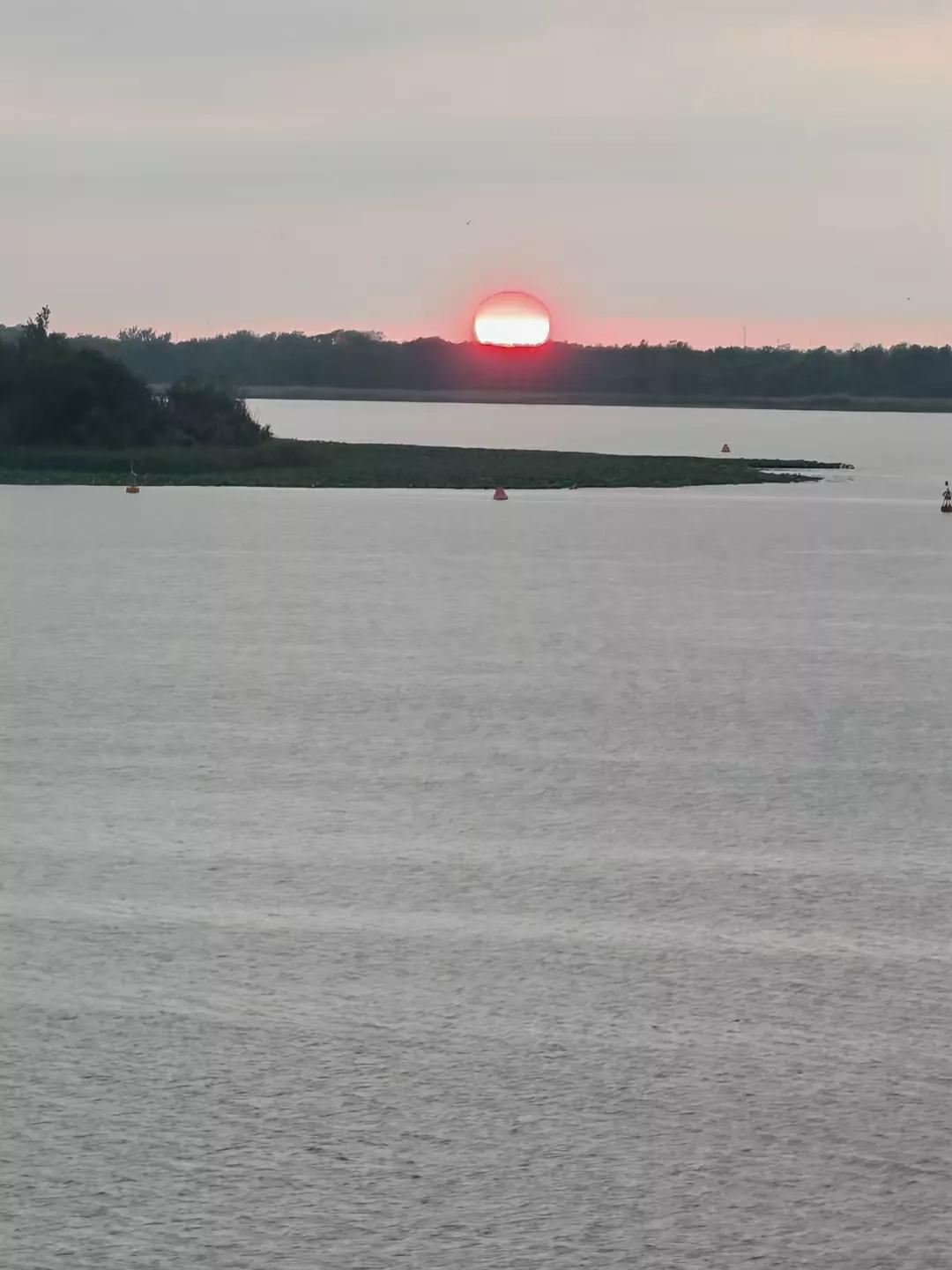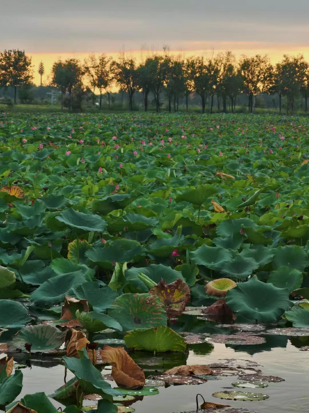 衡水人身边的衡水湖,落日余晖映荷花