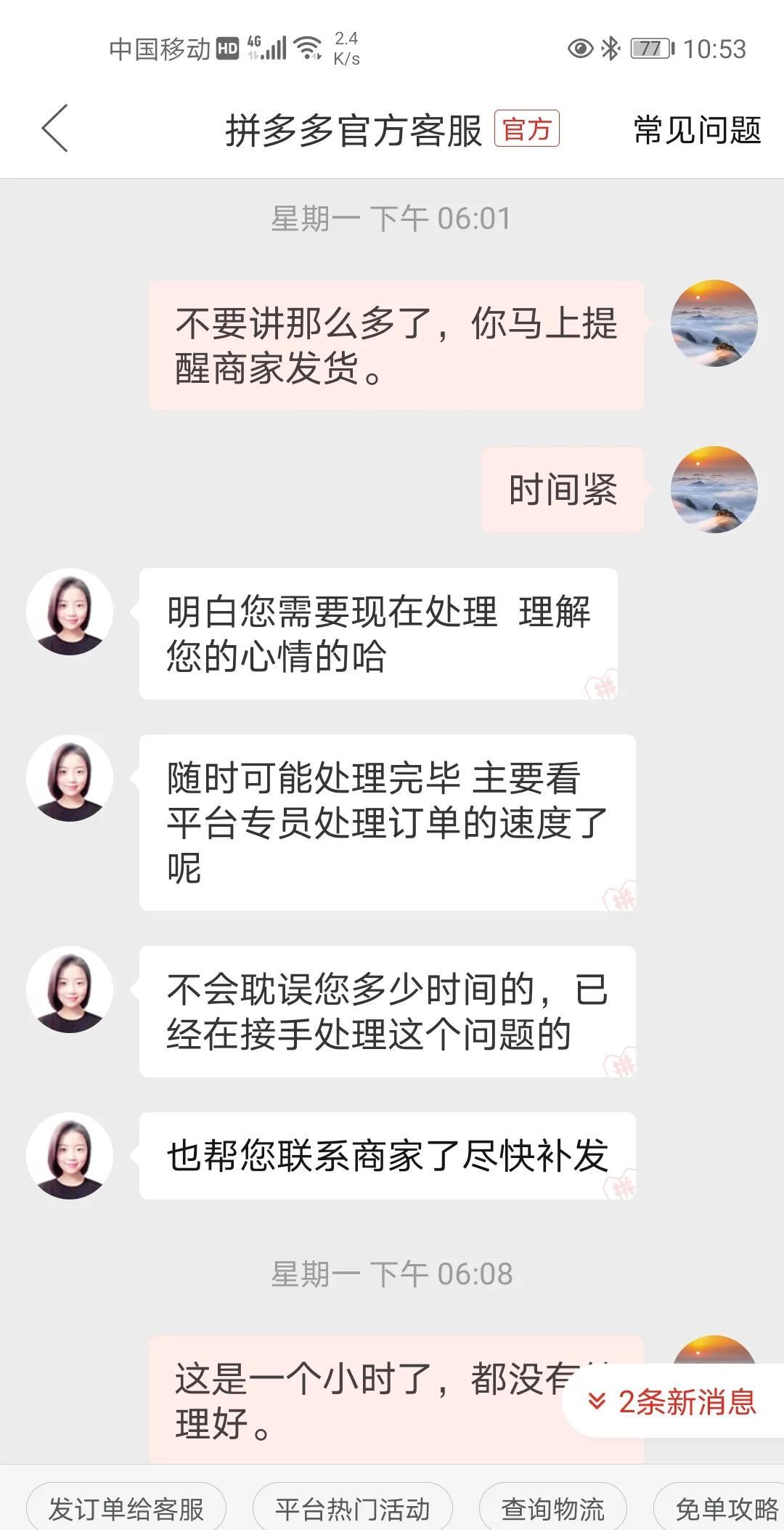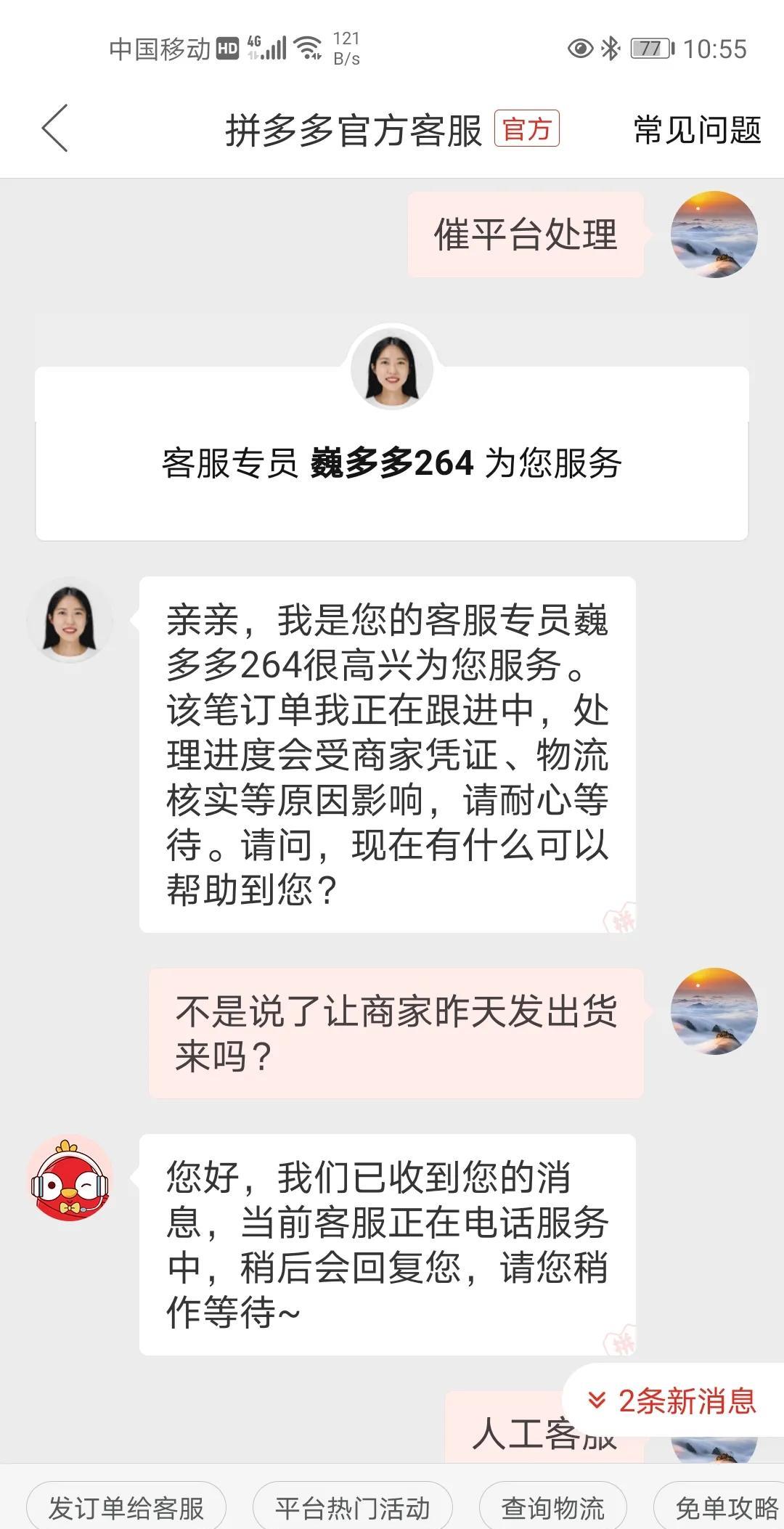 拼多多确实太垃圾了,在网上买了一个手机屏幕,到维修店里拆开后,验屏的时候发现有几个数字键不灵,让商家发顺丰换货,省得在维修店放那么久,商家不同意。找官方客服,刚开始答应好好的,会让商家发顺丰及时发货。到后来客服就互相踢皮球,两天了都没处理,准备卸载拼多多了,太失望了!#拼多多故障# #拼多多投诉# #拼多多不良反应# #拼多多退款退货# @拼多多