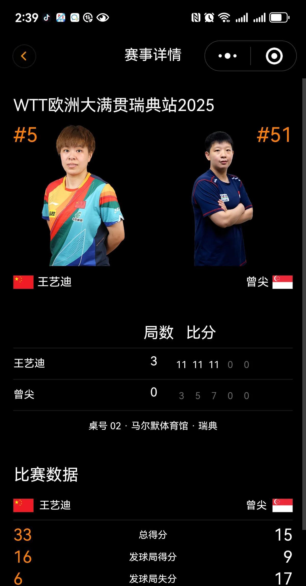 19分钟,王曼昱把比赛打成教学片 迪亚兹父女赛后直接鼓掌,观众席安静得像图书馆 王曼昱3:0迪亚兹,三局加起来只让对手拿14分。球速快得镜头跟不上,迪亚兹刚抬手,球已经落在身后。世界第21被打出世界第121的错觉。 这不是爆冷,是降维打击。王曼昱赛后说调动更好,翻译过来就是:我还没出汗。 同一天,王艺迪3:0曾尖,石洵瑶3:0黄怡桦,蒯曼3:1何卓佳。国乒女单四朵金花集体晋级,像提前约好的团建。 唯一掉队的是钱天一,0:3输给削球手桥本帆乃香。输球不丢人,丢人的是全场被旋转耍得团团转,像第一次打乒乓球。 混双林诗栋/蒯曼3:2险胜德国组合,决胜局11:9。年轻人心脏够大,关键分敢打敢拼,比赢球更可贵的是学会了怎么赢。 男双梁靖崑/温瑞博3:0速胜,配合默契得像穿同一条裤子。国乒这次不是来比赛的,是来进货冠军的。 19分钟能做什么?王曼昱用19分钟告诉你:能打完一场比赛,能摧毁对手信心,能让世界记住中国速度。