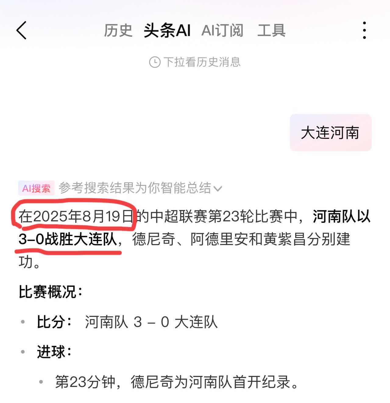 河南和大连英博的中超联赛怎么踢完了?河南主场3:0,本来想在头条里搜索一下本轮大连英博的比赛时间,结果被当头一棒,被告知大连球迷完美的错过了比赛时间。德尼奇首开纪录,阿德里安再下一城,黄紫昌锁定胜局,全程有板有眼,一本正经的胡说八道,这也体现了全网对河南球队的认可。昨天刚刚专治各种不服,足协杯半决赛把成都蓉城打回原形,今天就马不停蹄的完胜大连英博,并且在比赛中的细节已经具像化,不知道大连球迷们有没有控制住你们的冲动,实在不行把卡兰加也给整上,看来查询这种比赛信息只能通过专业平台,否则就真的被治服了,大连英博还得交交朋友保级啊。友情提示:中超22轮河南VS大连英博比赛时间,2025年8月24日,19:35。
