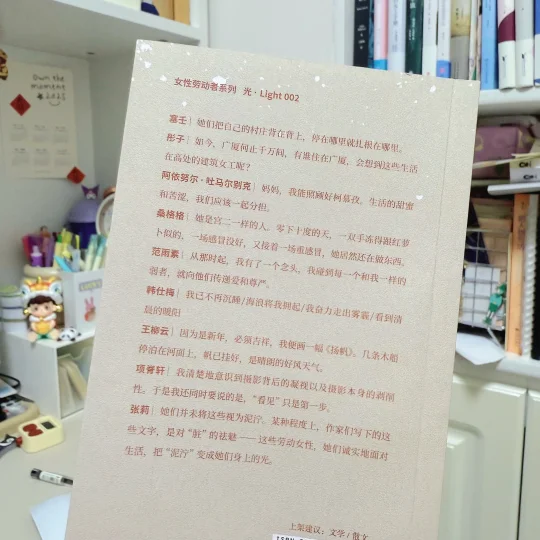 这本书是北师大教授张莉主编的作品集,记录了不同身份背景的女性在劳动生活和家庭生活中的真实图景,像家政女工范雨素、建筑女工彤子、单亲妈妈阿依努尔·吐马尔别克等等。
