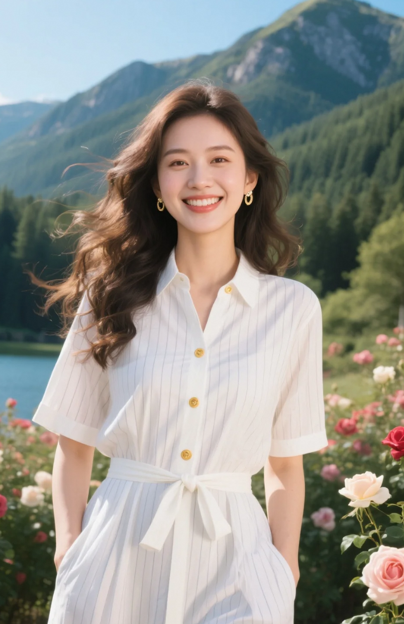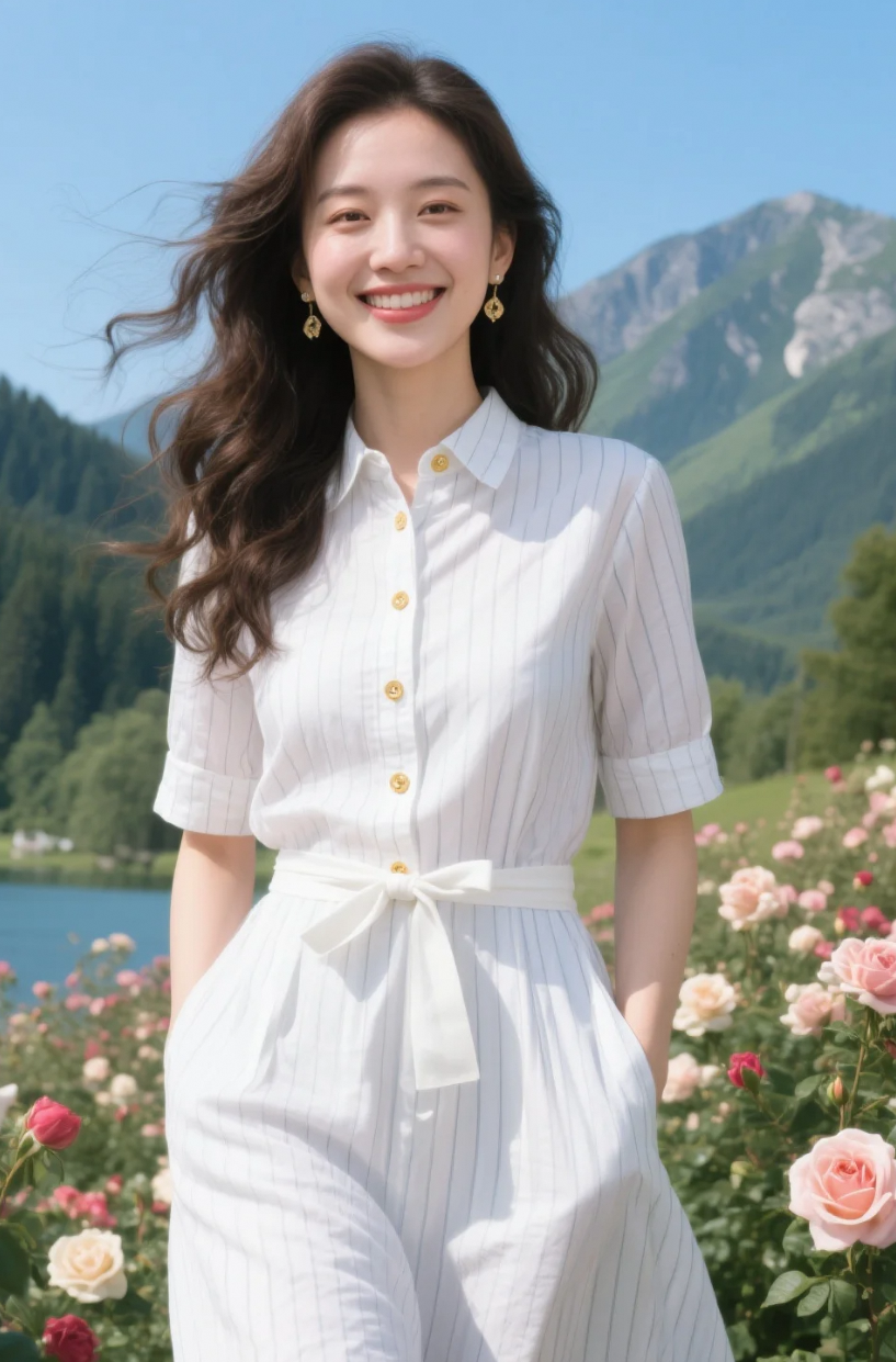 白裙拂过玫瑰,她在风里写下一首夏日诗行