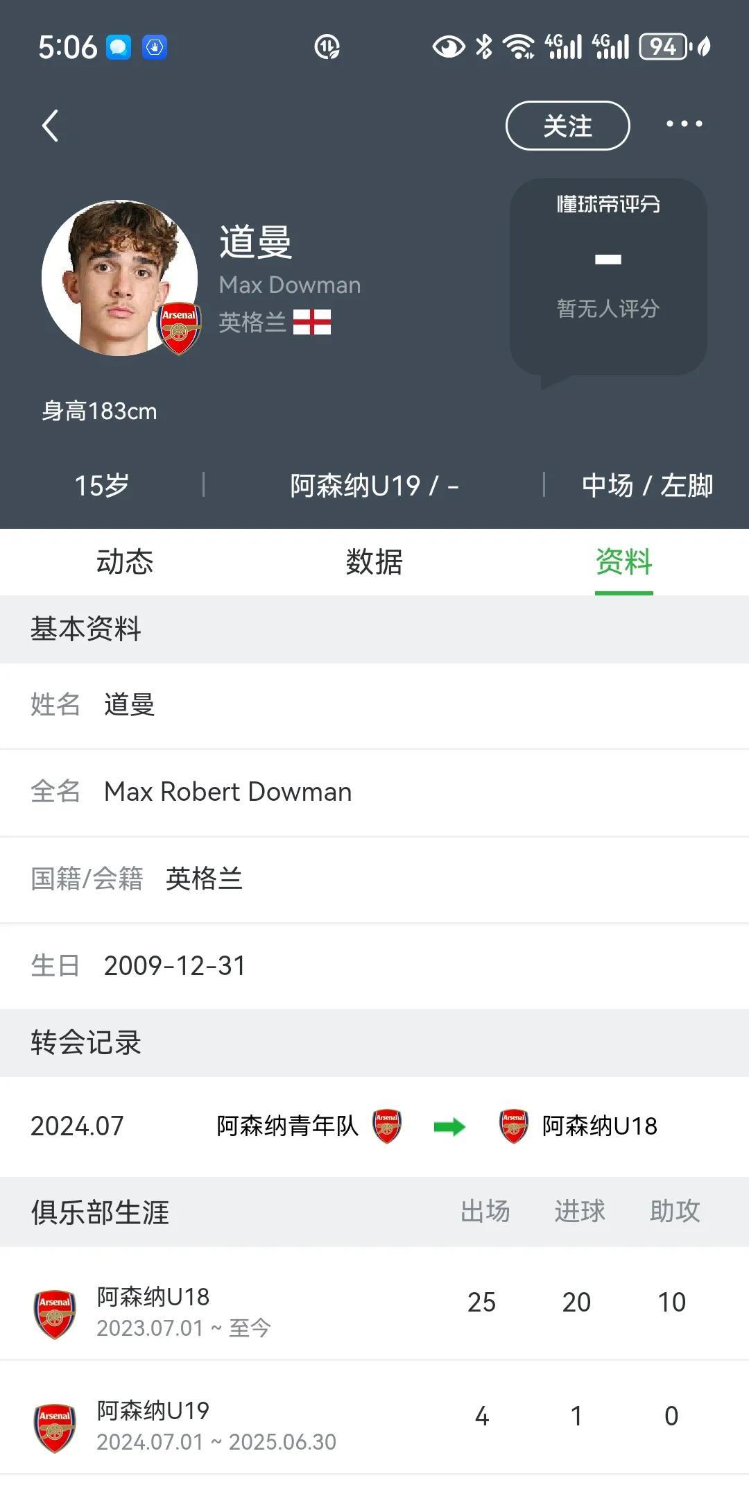 阿森纳未来帝星首秀非常惊艳!年仅15岁235天的的道曼成为英超历史上第二年轻出场的球员。不过与师兄恩瓦内里当年打酱油的首秀相比,道曼的首秀非常亮眼,不仅有全场最高的4次尝试过人,而且最后时刻还成功造点。如果顺利发展,未来与亚马尔绝代双骄的人很可能就是道曼!唯一担心就是道曼目前身高已经1米83,对于一名进攻型中场来说,身高如果超过1米9就有点高了,可能需要改位置。