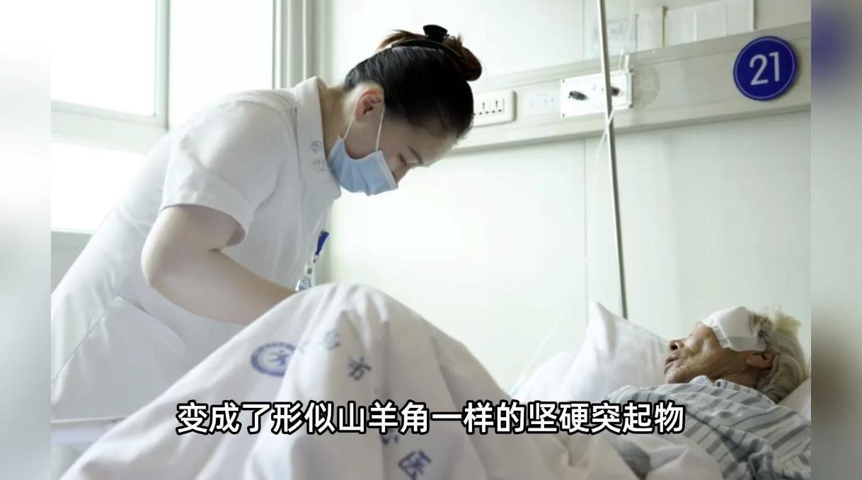 浙江义乌,一位83岁的老太因为经常出门晒太阳,结果在左边太阳穴的位置,竟然长了一个黄豆大小的凸起,老太没觉得疼和不适便没有当回事,可谁知如今这个凸起竟然和“山羊角”极其相似,医生看后惊讶的表示:这可是癌症! 根据8月18日的报道,毛奶奶是去年在左边太阳穴的位置,悄悄冒出了一个黄豆大小的凸起。这小疙瘩不疼也不痒,毛奶奶没把它当回事,觉得可能就是个普通的老年斑或者小疙瘩,过阵子自己就消了。 可谁也没想到,这小疙瘩就跟被施了魔法似的,如今突然开始疯长。没几个月,它就变得像山羊角一样,又硬又挺,长度竟然达到了 7 厘米。毛奶奶自己和老伙伴们都觉得这个是长寿角,是长寿的象征,都夸毛奶奶有福气。 但是毛奶奶有时候不小心碰到会感觉有点不舒服,毛奶奶的家人知道后赶紧带着她去了医院。到了医院,医生仔细检查了毛奶奶太阳穴上的这个 “角”。医生发现,这个 “角” 表面粗糙又坚硬,和传说中象征长寿的 “长寿角” 完全不一样。经过初步判断,医生觉得这可能是 “皮角”。为了弄清楚到底是什么,医生给毛奶奶安排了病理检查。 没几天,病理结果出来了,显示鳞状细胞异型增生,考虑为鳞状细胞癌。这个结果可把毛奶奶和家人吓坏了,谁能想到一个看似普通的小凸起,竟然是癌症呢。 原来毛奶奶,今年 83 岁了,身子骨还算硬朗,平时最大的爱好就是出门溜达,尤其是喜欢在太阳底下待着,觉得晒晒太阳浑身都舒服。没想到就是因为这个原因导致的! 医生解释说,这种情况常见于 65 岁以上的老年群体,长期暴露在紫外线之下是主要的致病因素。毛奶奶常年出门晒太阳,又没做好防晒措施,这才让皮肤受到了损伤,最终引发了病变。 好在发现得还不算太晚,专家团队先把毛奶奶的肿物完整切除掉,然后快速进行病理确认。同时,还运用整形外科技术对切除后的部位进行了精细修复。手术后,毛奶奶恢复得挺好,脸上的伤口也在慢慢愈合,精神状态也渐渐好了起来。 这件事在网上传开后,引起了不少网友的讨论。 有网友说:“我奶奶也特别喜欢晒太阳,夏天大中午都出去,看来得赶紧提醒她注意防晒了。以前总觉得晒太阳补钙,没想到还会得癌症,真得重视起来。” 但也有网友表示:“不是什么大事,我邻居家一奶奶也长了一个,时间长了自己脱落了,今年已95岁了,啥事没有!” 对于这件事,你们怎么看?