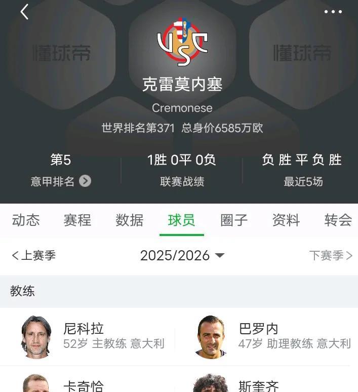 意甲首轮最有良心的四支俱乐部 ★克雷莫内塞:首发8名意大利本土+2名意大利替补,