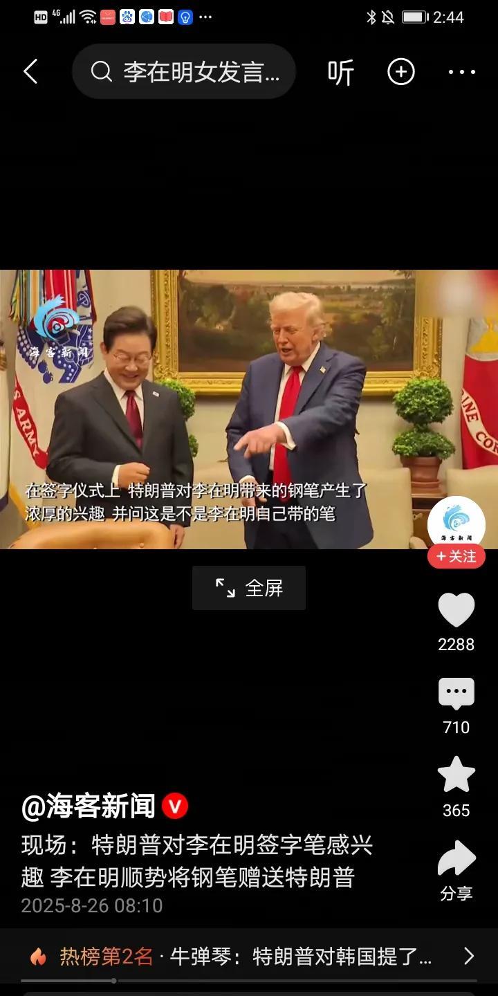 特朗普说李在明签字笔好,李在明就毫不吝惜相送 川普:大到格陵兰岛,小到一支圆珠笔