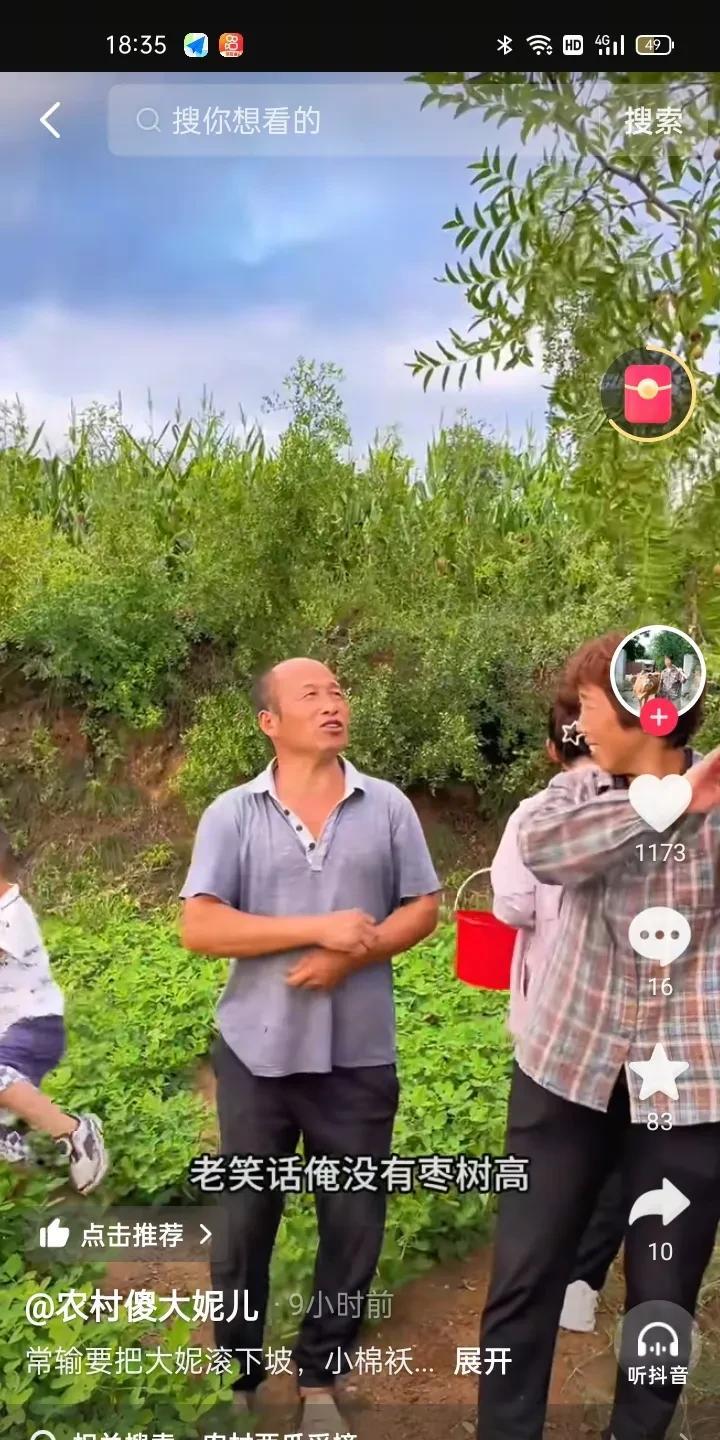 老傻带着闺女摘酸枣,二丫天天算计她爹娘这俩钱,常输有儿子,聪聪也整不了多少钱,全靠老傻两口子贴补,二丫她男人一个人也比聪聪两口子挣得多,老傻天天出去卖货,不停的给儿子攒,心里不就是着急吗,给儿子还不够用呢,哪有多余给闺女的。