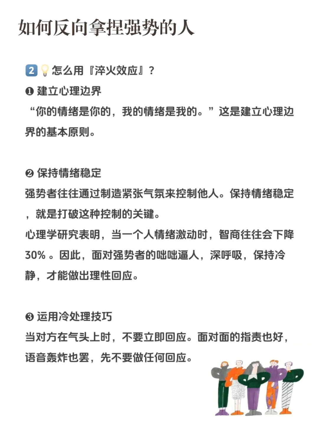 心理学研究表明,当一个人情绪激动时,智商往往会下降30% 。因此,面对强势者的咄咄逼人,深呼吸,保持冷静,才能做出理性回应。