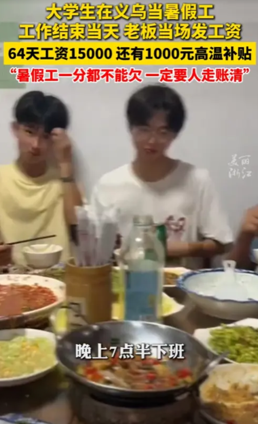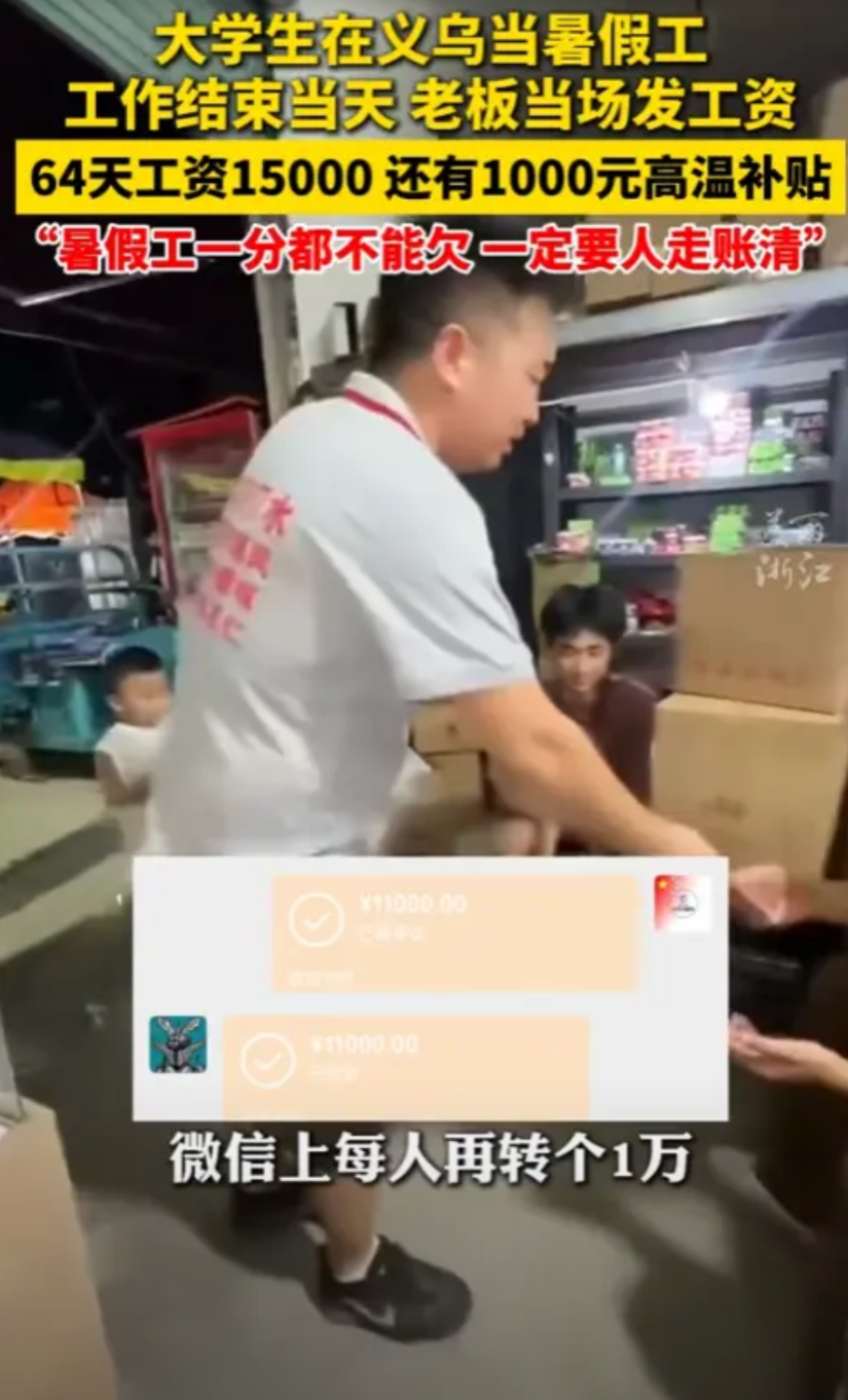 泪目!8月24日,浙江,大学生在义乌当暑假工,现在要开学了,他们只好向老板提出离职。工作结束当天,老板当场就发工资,64天发了15000元,还有1000元高温补贴!老板直呼:暑假工一分都不能欠,一定要人走账清。网友:这样的老板生意不火天理难容!