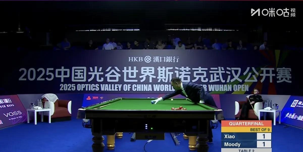 卫冕冠军淘汰最大黑马,闯进武汉公开赛4强将对阵金左手! 2025斯诺克武汉公开赛1/4决赛,卫冕冠军中国的肖国栋对阵本站最大的黑马英国小孩哥斯坦·穆迪。 这场比赛肖国栋准备充分,打的相当沉稳。 比赛开始,小孩哥先声夺人,抓住机会以84:40先赢下第一局。随后,肖国栋沉稳应对,一波三连鞭将大比分扳成3:1,领先结束上半场。 下半场,肖国栋上来再下一城,4:1拿到赛点。 5:2,肖国栋战胜穆迪,终结了对手连胜的脚步,强势晋级武汉公开赛4强。 恭喜肖国栋! 肖国栋半决赛将对阵马克·威廉姆斯。