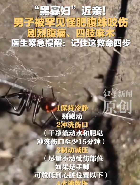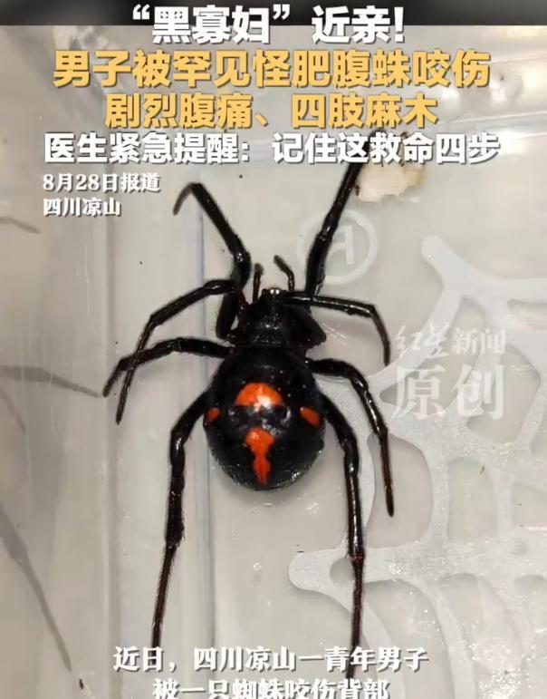 太吓人了!四川凉山,一年轻男子在外面干活,突然背部感觉刺痛一下,他扭头一看,发现一只长相很少见的蜘蛛迅速爬走,一开始他没太当回事,以为就是普通虫子叮咬。但没过多久,他开始剧烈腹痛、呼吸急促、四肢发麻,感觉越来越不对劲,这才赶紧去了医院 到了医院后,那里的动物致伤救治团队一听症状,立刻警觉起来。他们联系了昆虫专家,通过照片和描述反复比对,最终确认:咬伤他的,是一种极其罕见的蜘蛛:怪肥腹蛛 说名字很多人都会陌生,但如果说它另一个近亲品种的名字就不陌生了,那就是黑寡妇,它们同属寇蛛亚科,毒性很强。在此之前,四川只有过零星几次发现记录,而被它咬伤导致中毒的病例,小伙也算开了先例 医生介绍,这种蜘蛛的毒素会引起类似黑寡妇咬伤的症状:剧烈腹痛、肌肉抽搐、呼吸困难、肢体麻木等,严重时甚至可能危及生命 幸好,这名男子送医及时,经过对症治疗,目前情况已经稳定 说实话,平时我们对蛇、马蜂都比较警惕,但对蜘蛛的防范意识并不强。大多数蜘蛛毒性不大,顶多咬一口红肿发痒,可像怪肥腹蛛这种特殊种类,毒性比一般人想象的要厉害。一旦被咬伤,不能拖延,要尽快送医 尤其是在野外干活、爬山、露营的时候,遇到不认识的虫类,尽量远离,不要用手直接触碰。万一被咬伤、并且出现不适,最稳妥的做法是尽快就医,最好能记住虫子的特征,甚至拍照留存,方便医生判断