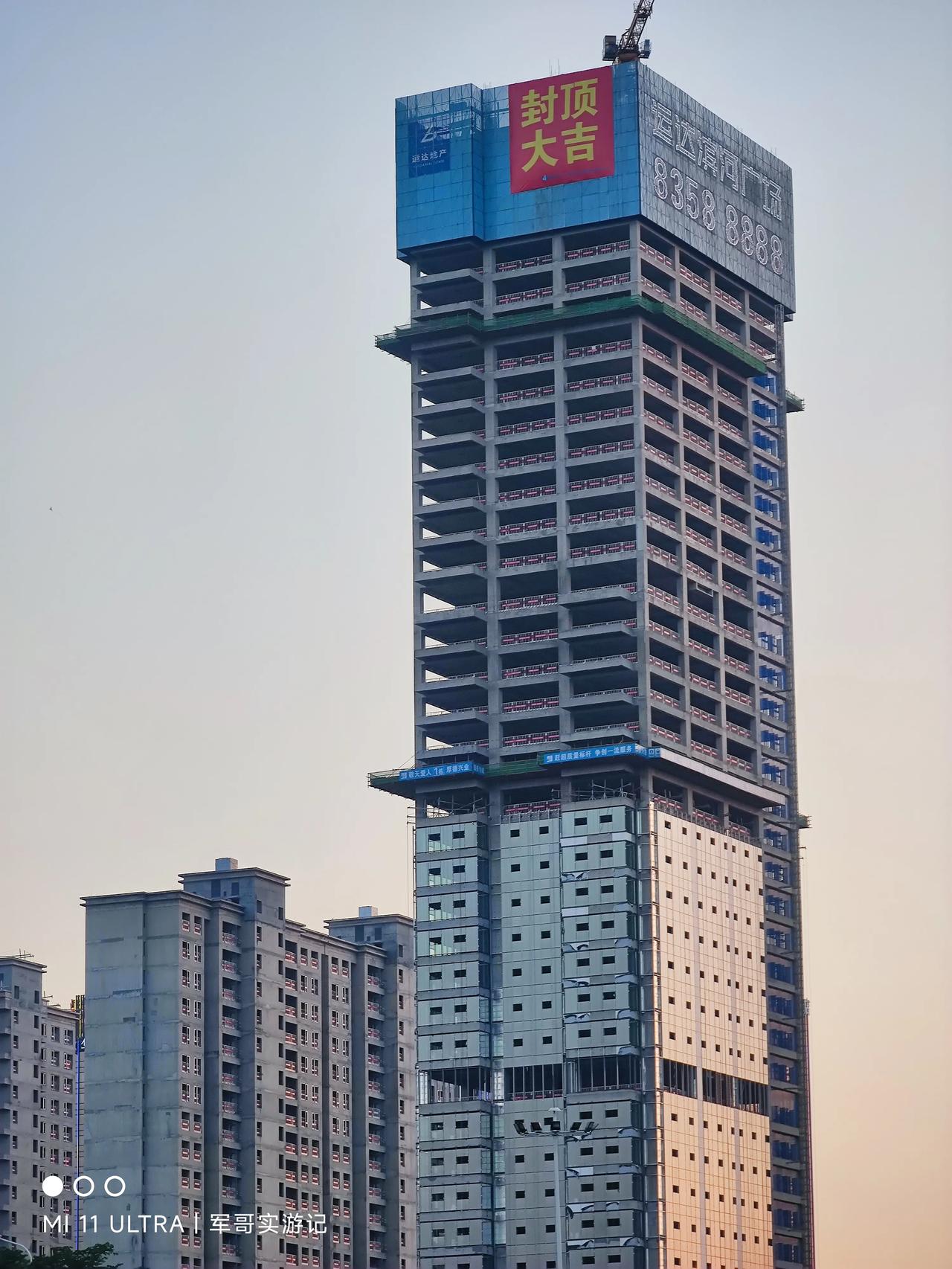 今天圭塘河边散步,突然发现运达滨河广场主楼也封顶了,真是可喜可贺! 短短两三年,华雅的那块菜地地已经高楼林立了。以前每次看到那块菜地就觉得很搞笑,在这么繁华的市区,竟然有块地拿来种菜,真是浪费。没想到人家就是等着涨价赚钱的。这不,地铁五号线一通车,立马就卖出了天价。 运达确实很牛X,就这块被高架桥半包围的地,也被他们打造成了豪宅区,听说房子卖到三万多一平,真是难以想象。 也祝贺长沙,又建成了一栋高楼!