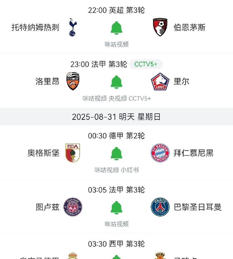 今日看点|中超强强对话,欧洲豪门奏凯? 1.切尔西,早场的英超西伦敦德比,切尔西主场力争首胜。 2.蓉城vs海港,中超争冠集团内战。 3.苏超常州,进球后能否迎来转机? 4.玉昆反弹?高原主场面对副班长,两战丢12球的玉昆能否止住颓势? 5.德甲法鹰,诸强没落,法兰克福能否陪跑拜仁? 6.不莱梅vs药厂,滕哈格首败,勒沃库森能否提振? 7.曼联!联赛杯耻辱出局,开局2轮不胜,阿莫林能拿到首胜吗? 8.热刺vs樱桃,3连胜还不丢球? 9.洛里昂vs里尔,央视直播。 10.拜仁。拜仁周中德国杯冷汗,客场打奥堡能否连胜? 11.大巴黎。两场小胜不解渴,大巴黎能夺回榜首吗? 12.皇马vs马洛卡,皇马力争3连胜不掉队。