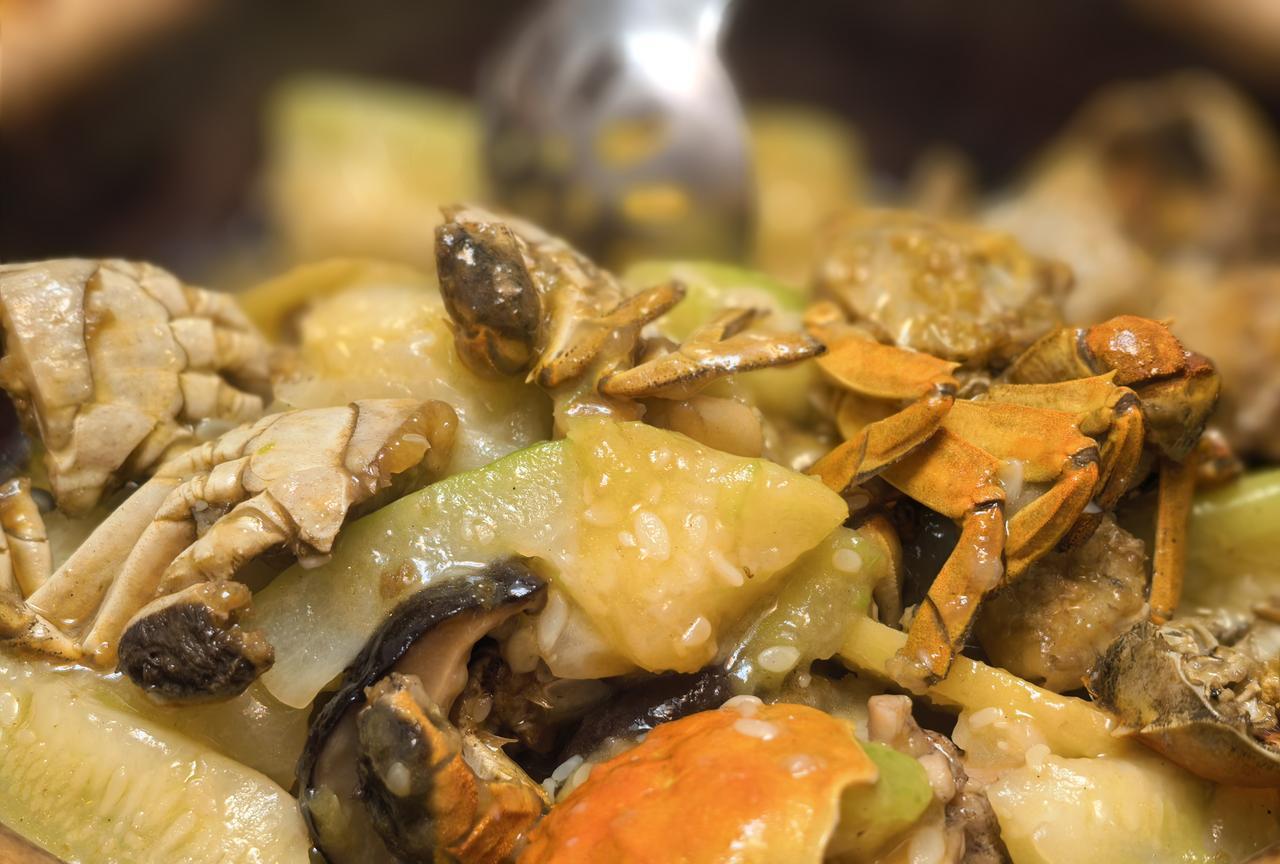 1、花蟹炒滑蛋 2、和顺鱼蒸沙虫 3、姜油浸青养 4、炆竹鸡 5、节瓜炆