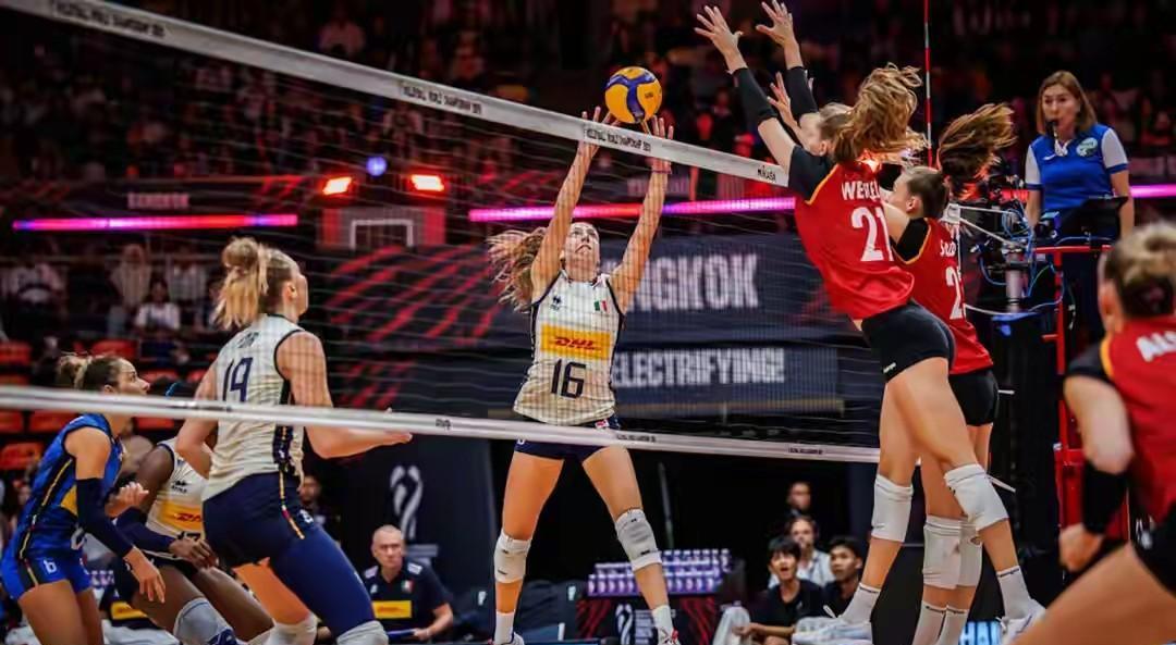 女排世锦赛第三场1/8决赛,意大利女排以25-22、25-18、25-11轻松击败德国女排,晋级八强,豪取球队在国际赛事的33连胜,1/4决赛将对阵波兰与比利时的胜者。意大利女排在主动得分环节全面压制德国,扣球47:30,拦网9:5、发球2:0,自失控制双方16平,艾格努拿到全场最高的21分。