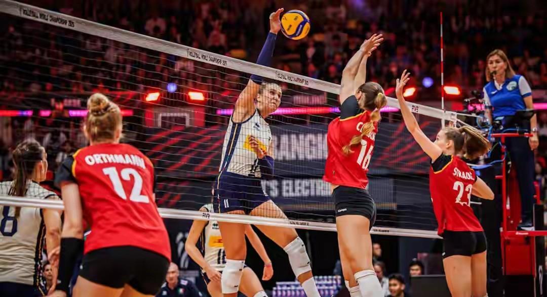 女排世锦赛第三场1/8决赛,意大利女排以25-22、25-18、25-11轻松击