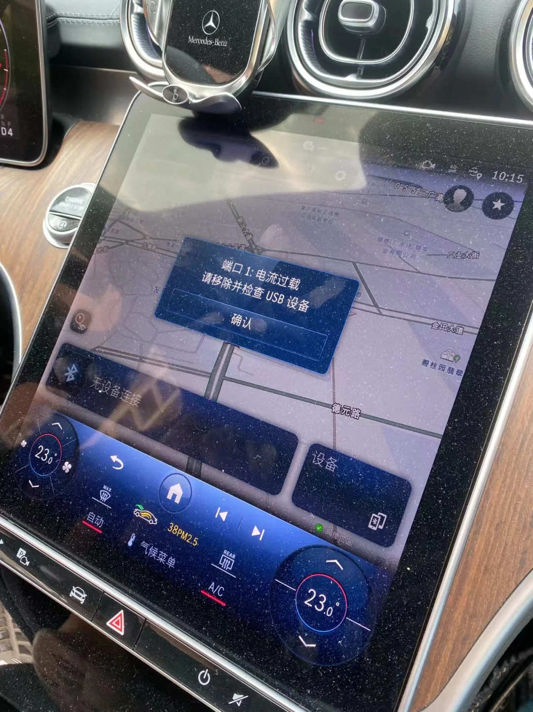 近期有不少奔驰车友中控大屏显示这个新的故障提示, [向右R]故障提示为: 端口1、端口2或3电流过载,[捂脸R]请移除或检查USB设备! [清单R]出现这个故障提示的意思简单来说就是你所接入的数据线或者电子设备超过了 usb 接口的电流限制,很可能是因为车上的USB充电器可能严重短路或者手机充电电流过大! [向右R]建议方法: [绿色心形R]1、重新换一条数据线接入试试看 [绿色心形R]2、重新取下充电头重新接入,顺便看看充电头末端是否有水 [绿色心形R]3、看你外接的设备比如空气净化器以及充电设备或者U盘转接头是否短路 [清单R]出现这个问题一般都是你接入的线或者设备有问题,除非是奔驰原车的USB这个模块坏了,但是概率很小! [哇R]以上为子昂总结给大家,感谢!