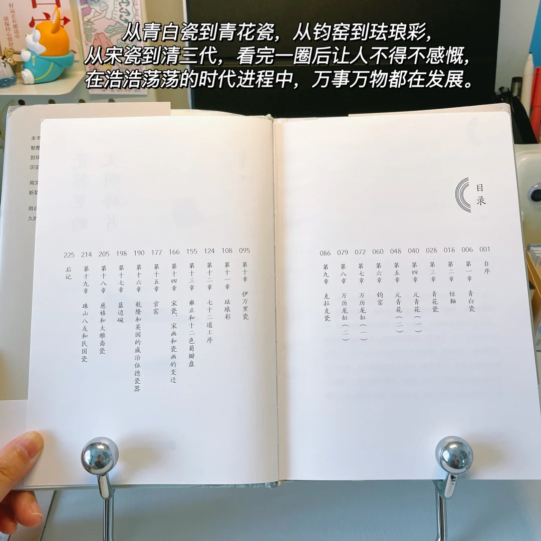 这本书真是让我大开眼界!瓷器从青白瓷到青花瓷,从钧窑到珐琅彩,从宋瓷到清三代,看完一圈后让人不得不感慨,在浩浩荡荡的时代进程中,万事万物都在发展。