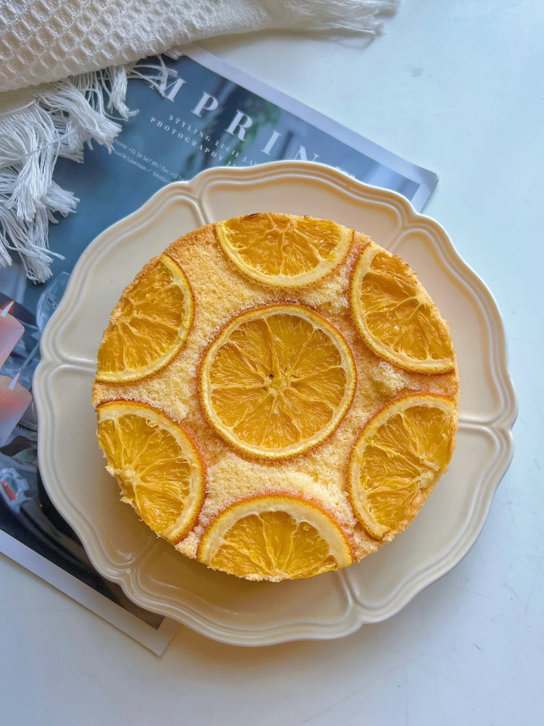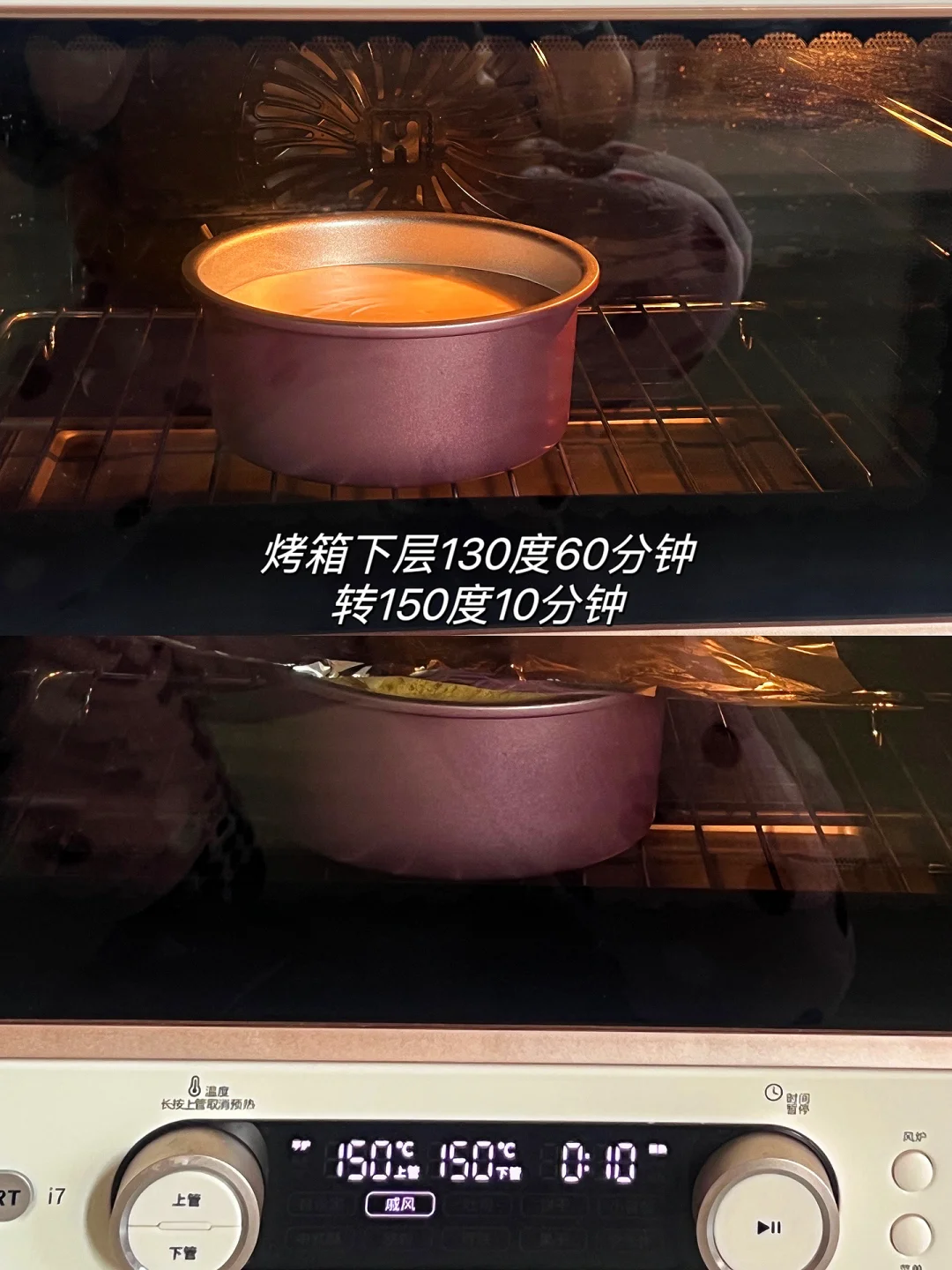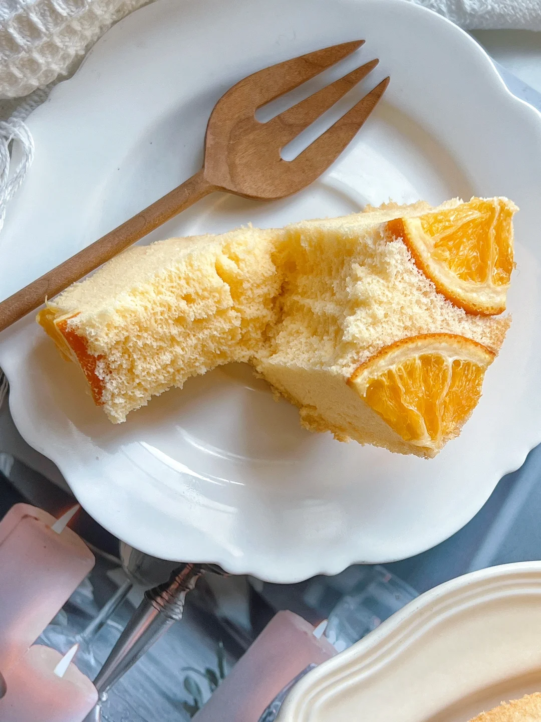 9️⃣从高处倒入放好糖渍橙子片的戚风模具,震几次震出大气泡,放入烤箱下层上下火130度60分钟,转150度10分钟(可以看上色情况盖锡箔纸)