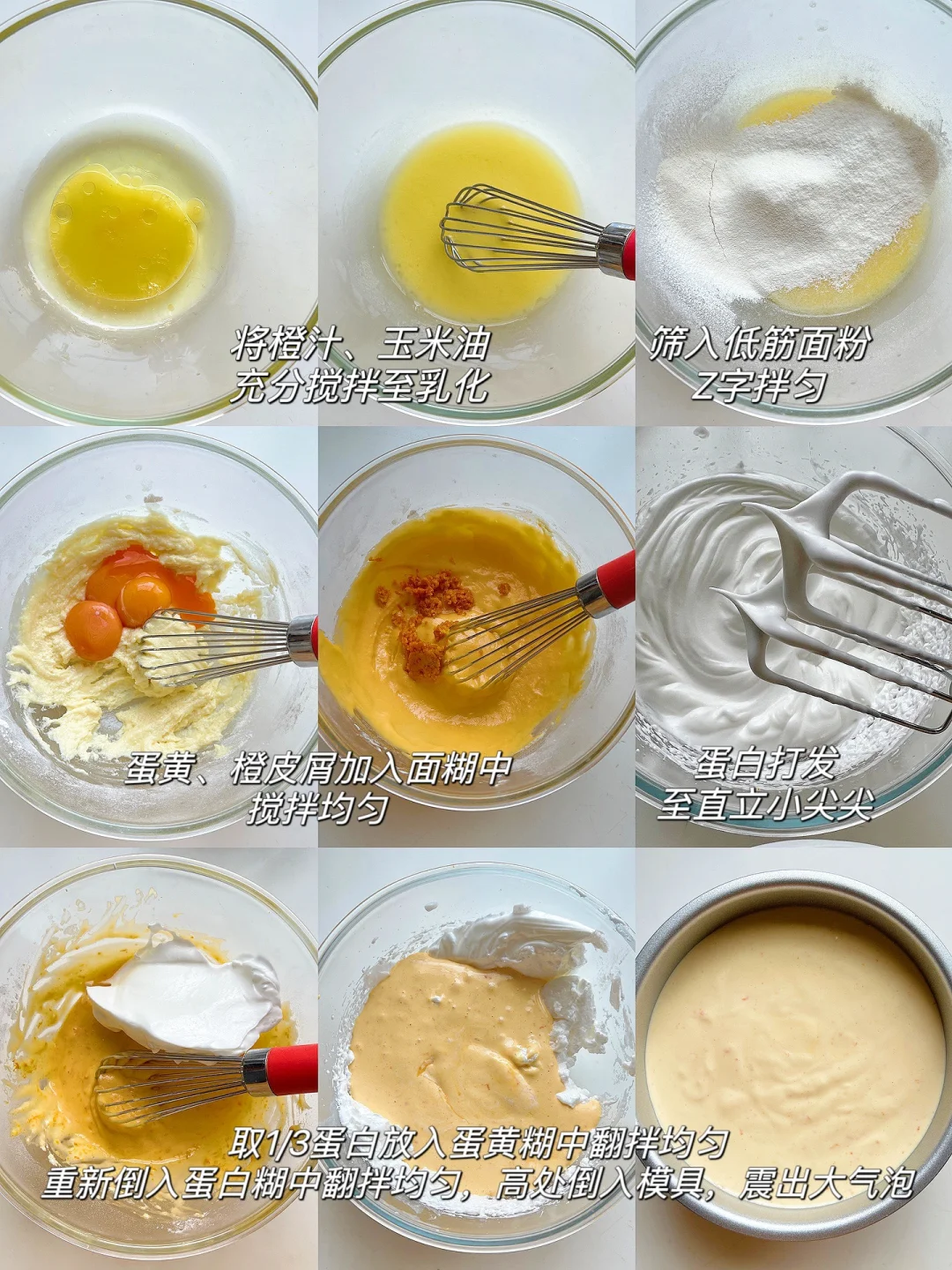 4️⃣将橙汁、玉米油充分搅拌至乳化