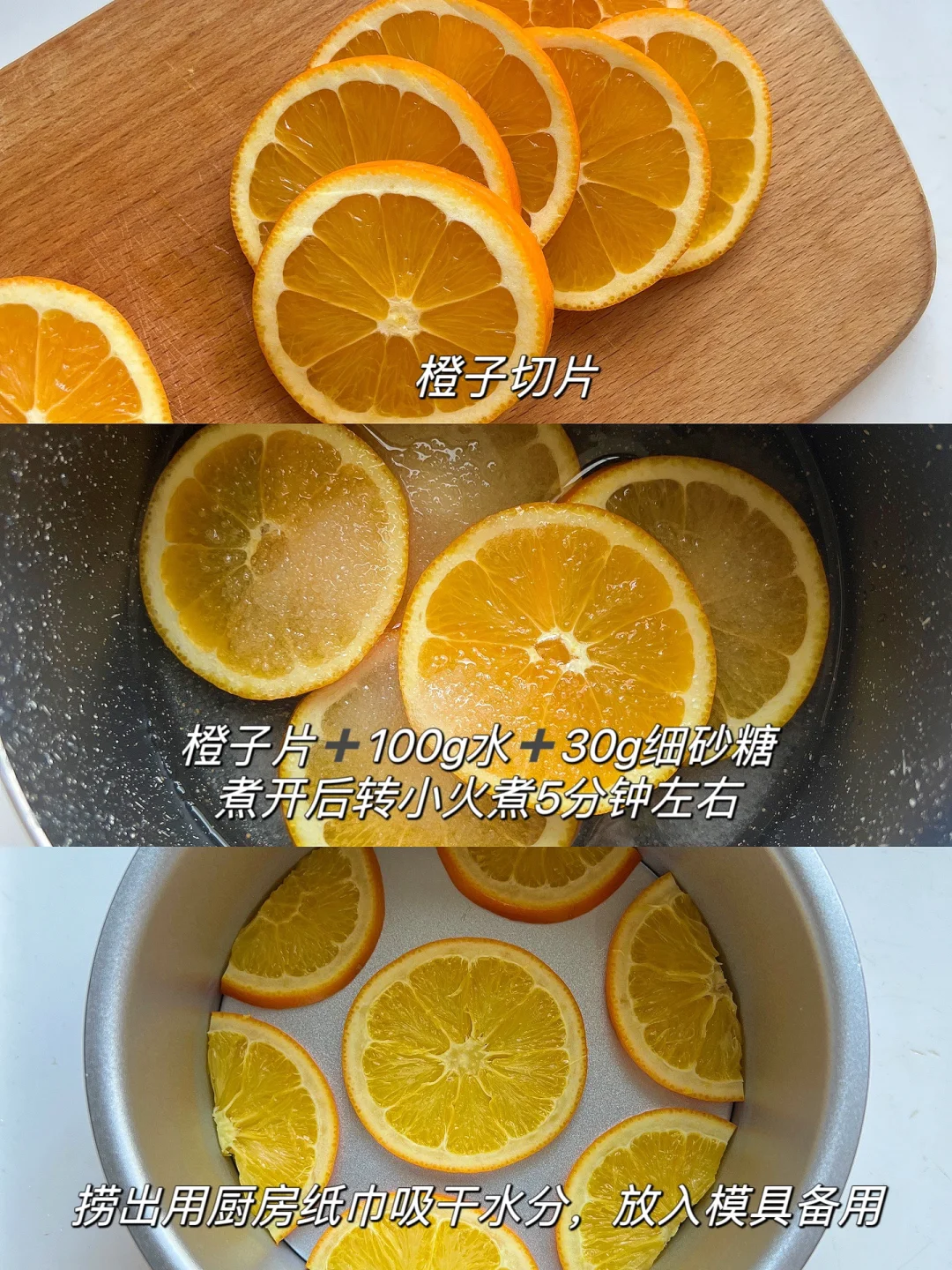 1️⃣橙子片十100g水+30g细砂糖,煮开后转小火煮5分钟左右