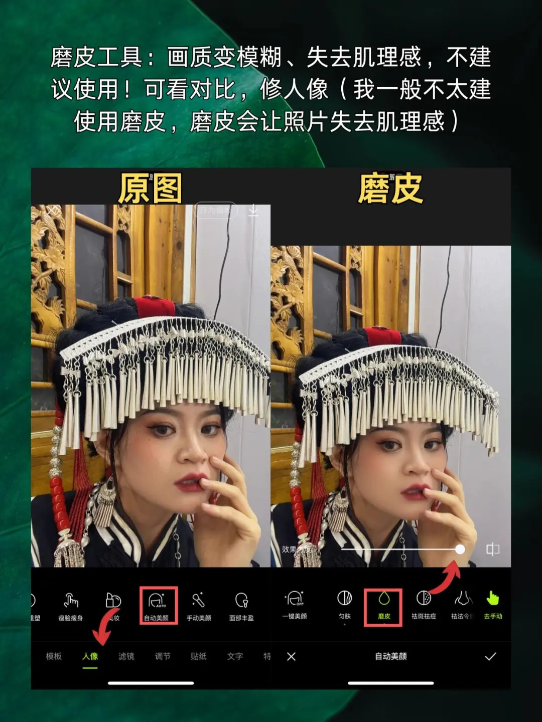 💐磨皮工具:画质变模糊、失去肌理感,不建议使用!可看对比,修人像(我一般不太建使用磨皮,磨皮会让照片失去肌理感)