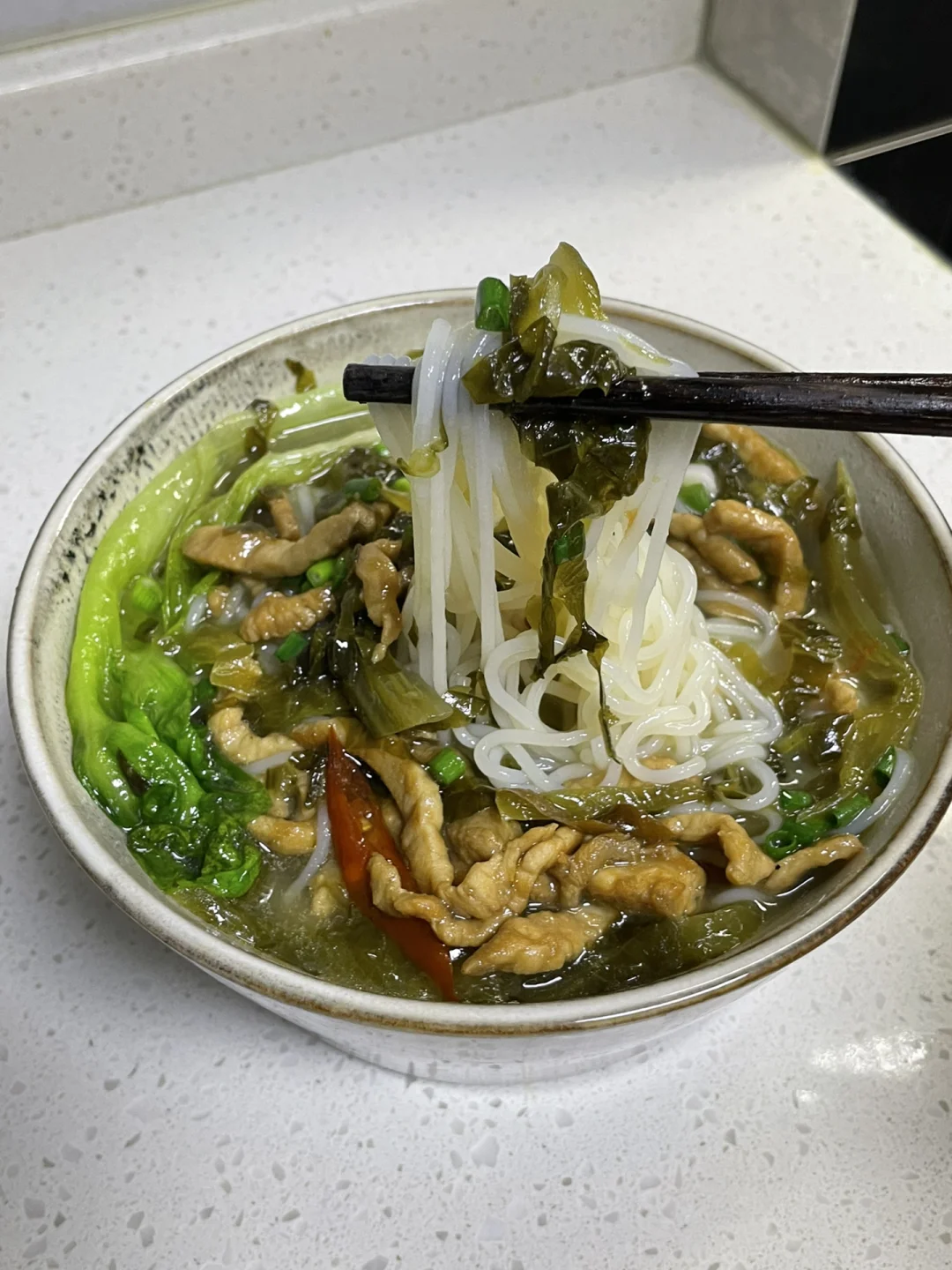 巨好吃的酸菜肉丝米线,酸辣开胃吃不腻🤤