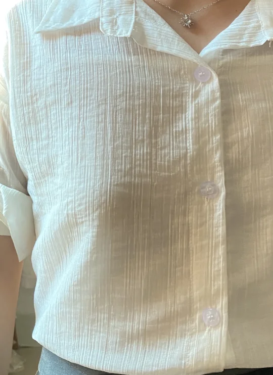 这件衬衫我拿到我还觉得挺好,这个价格简直捡到宝咯。然后我发现他穿上对有点肉的宝子非常不友好,所以我就想着换种方式,把衣服反过来穿,但是后面扣子有点尴尬我就➕了个内搭,这样咱们秋天的衣服就有啦、穷鬼不用花钱买秋装咯