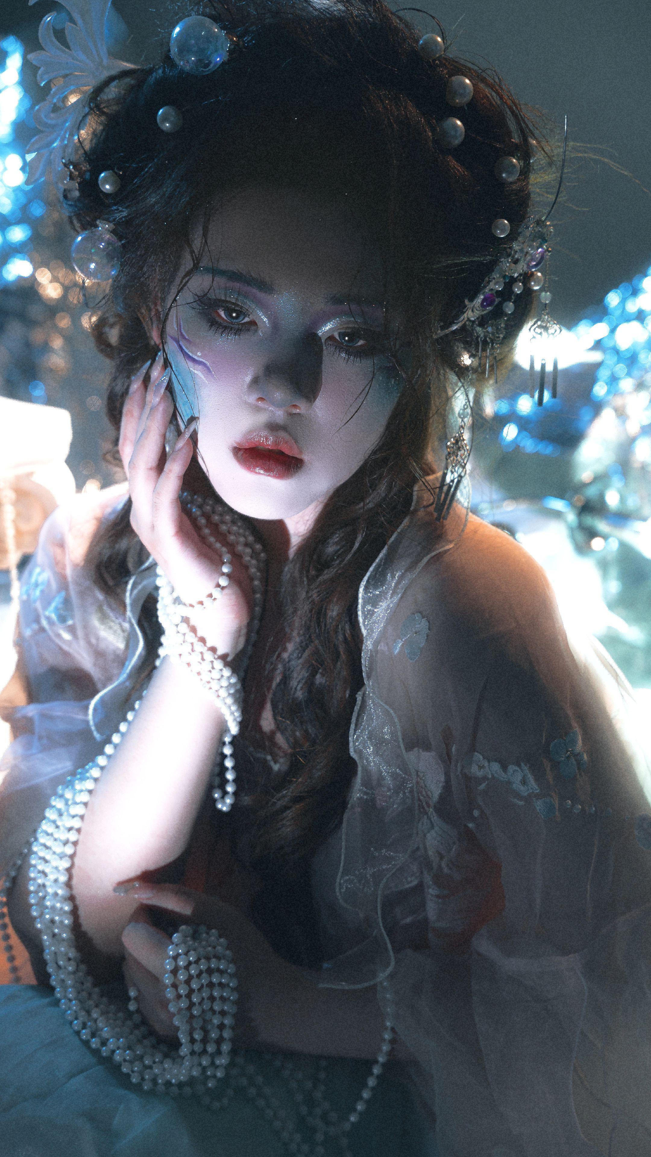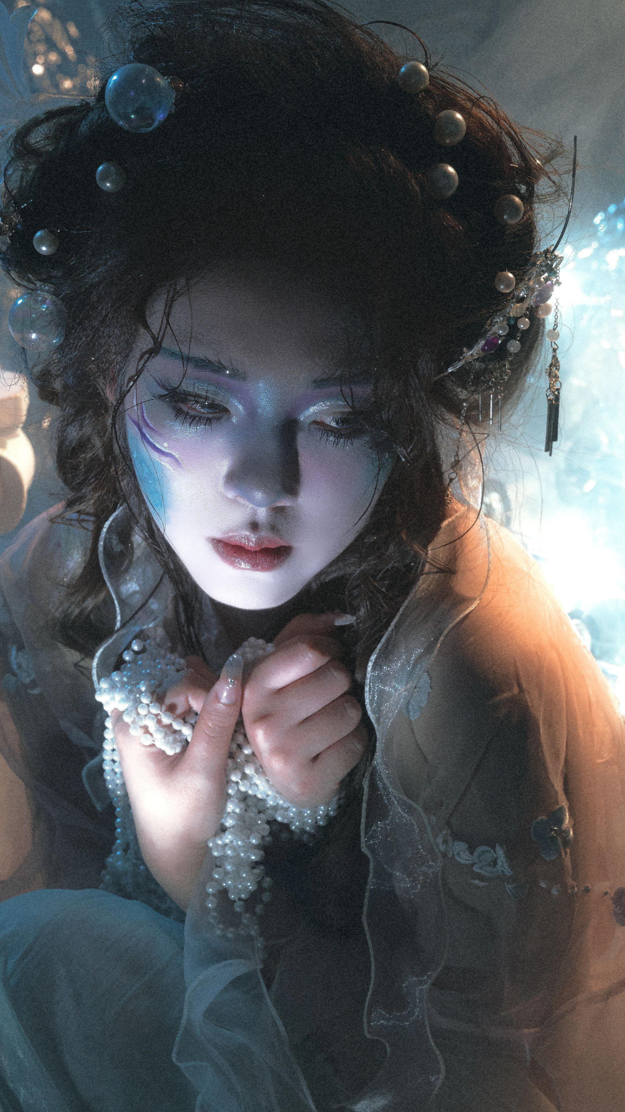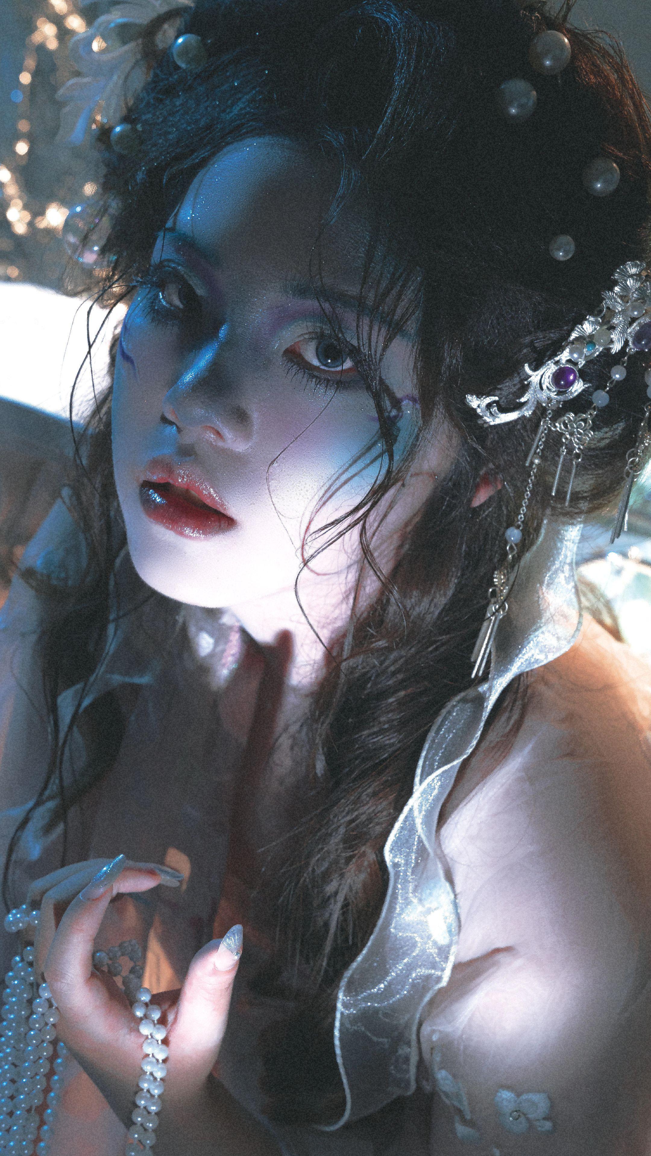 画皮娘子某,本工绘事。尝自描眉黛,铅粉扑额竟生鳞纹,原是爱美妖,胭脂着面即转青