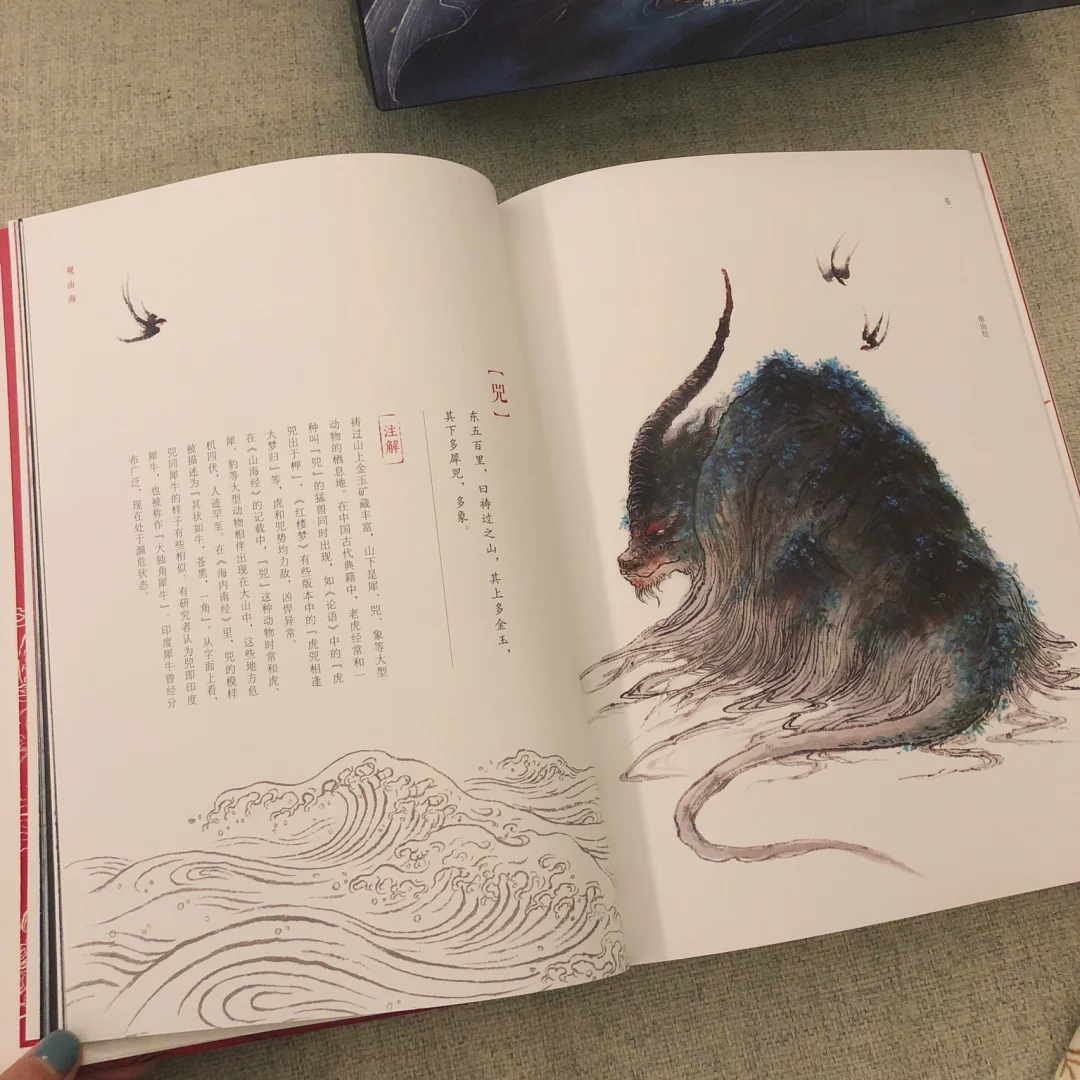 ▪️这本典藏纪念版的《观山海》为异兽们绘制的画像极为精美,富有艺术性和想象力。难得可贵的是,本书不仅是画集,还有大量对《山海经》的注解文字。