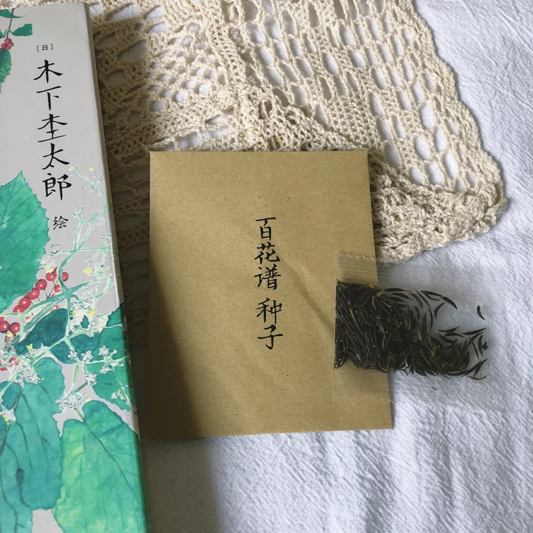 [暗中观察R]它随书还有一包“百花谱种子”,还挺好玩的,我打算十一过后种在花盆里,看看能长出来什么花,嘻嘻。