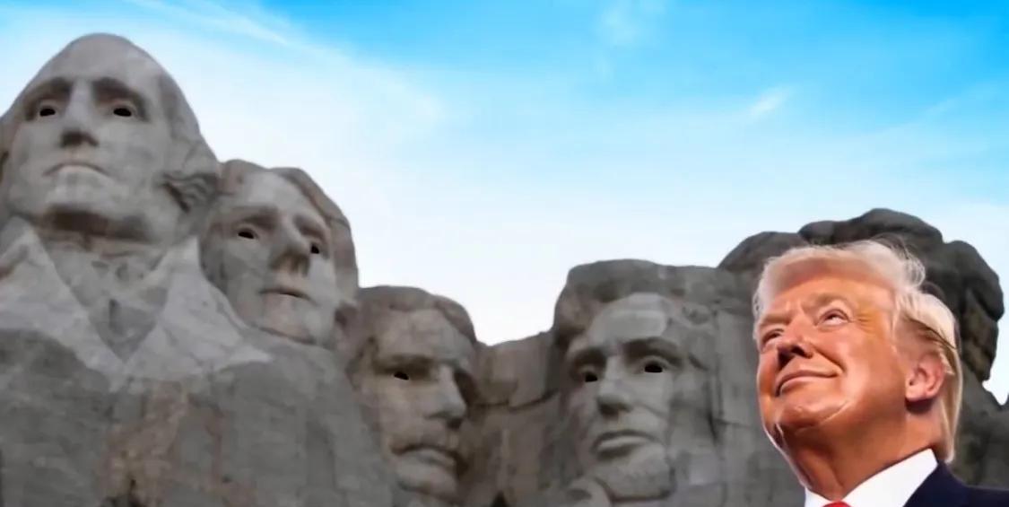 特朗普这一天天都在想什么?用AI做了个虚假视频上美国总统山 特朗普自己把自己排在