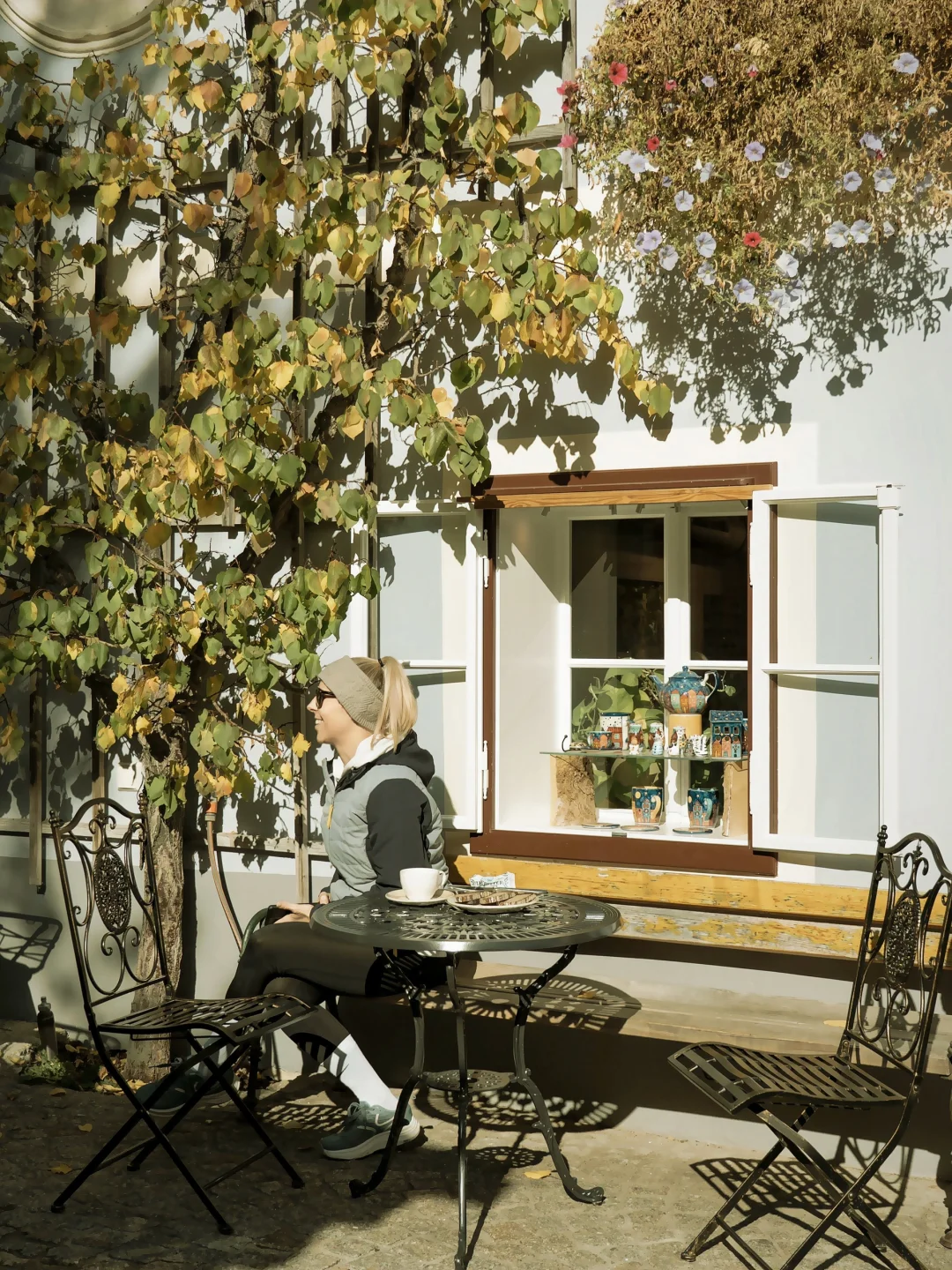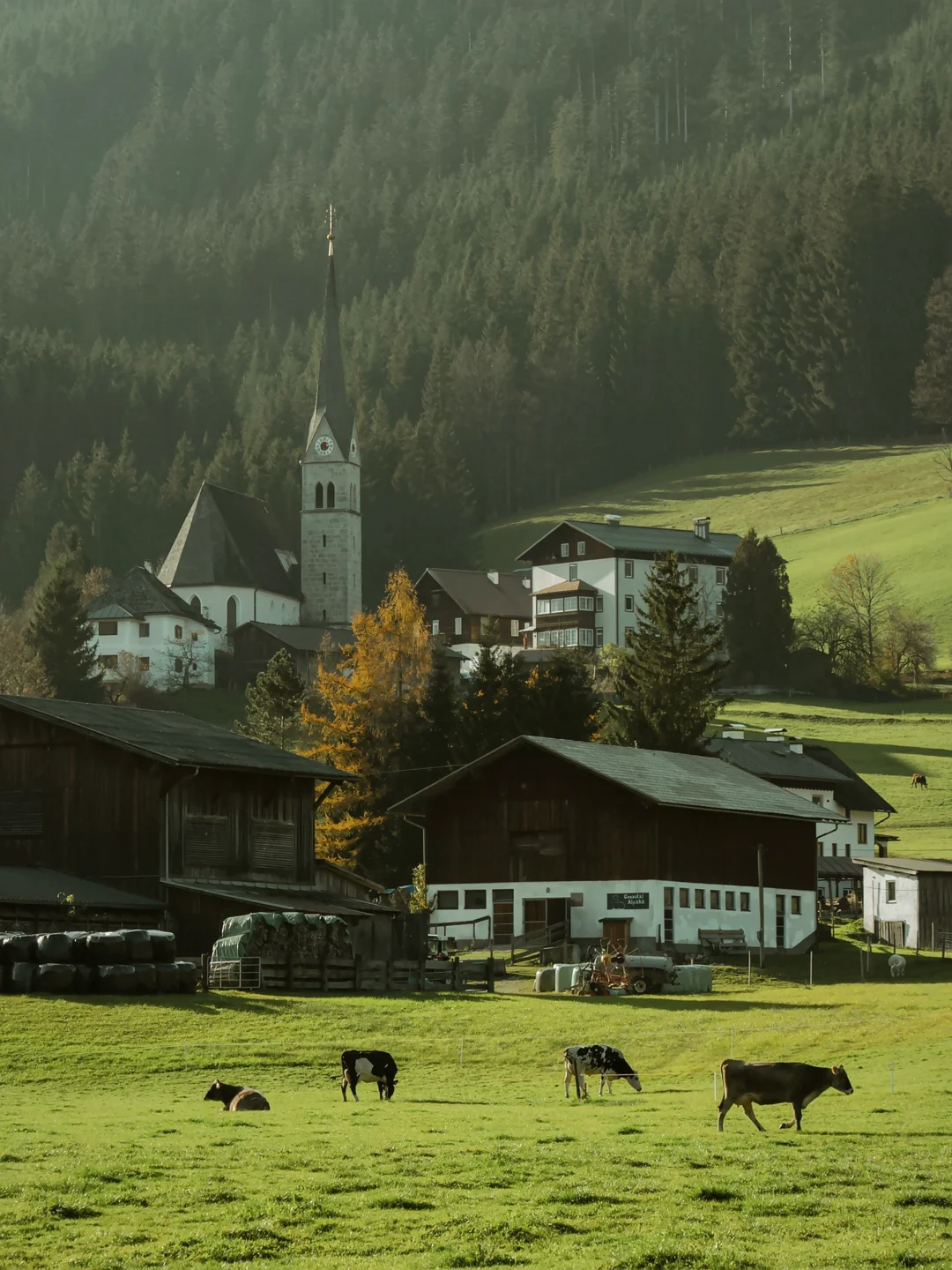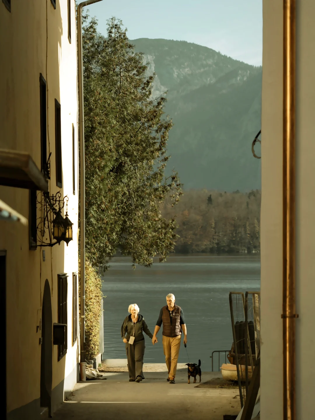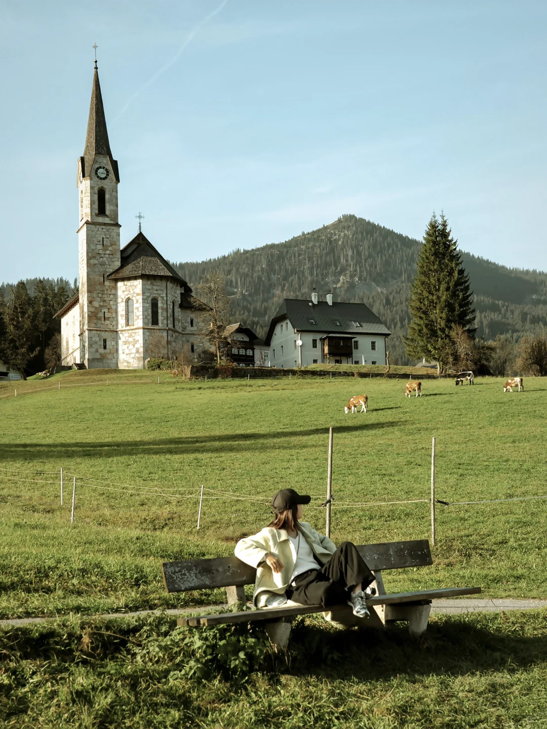 没想到10月底的Gosau还如此之绿 远眺就是一幅幅油画 建议留一晚在镇上住 早上晨雾笼罩着的戈绍小镇美飞!盲去的Cooee alpin Hotel Dachstein喝东西 室外公区view很棒