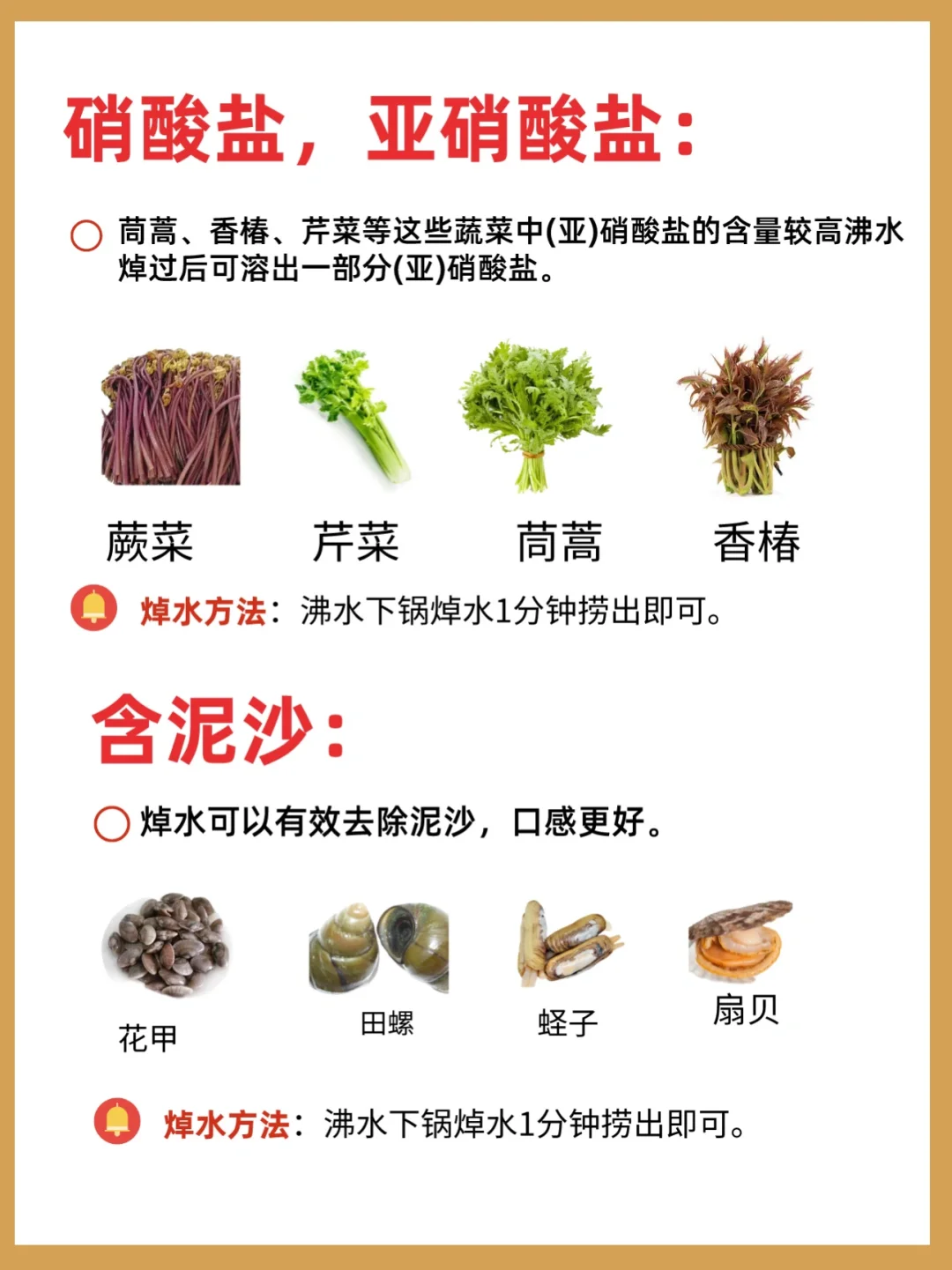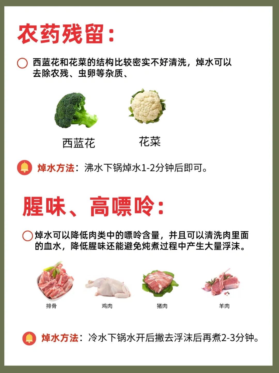 特别是新手妈妈给宝宝做辅食时真的分不清,今天就整理一些需要焯水的食物,快收藏起来吧❤️
