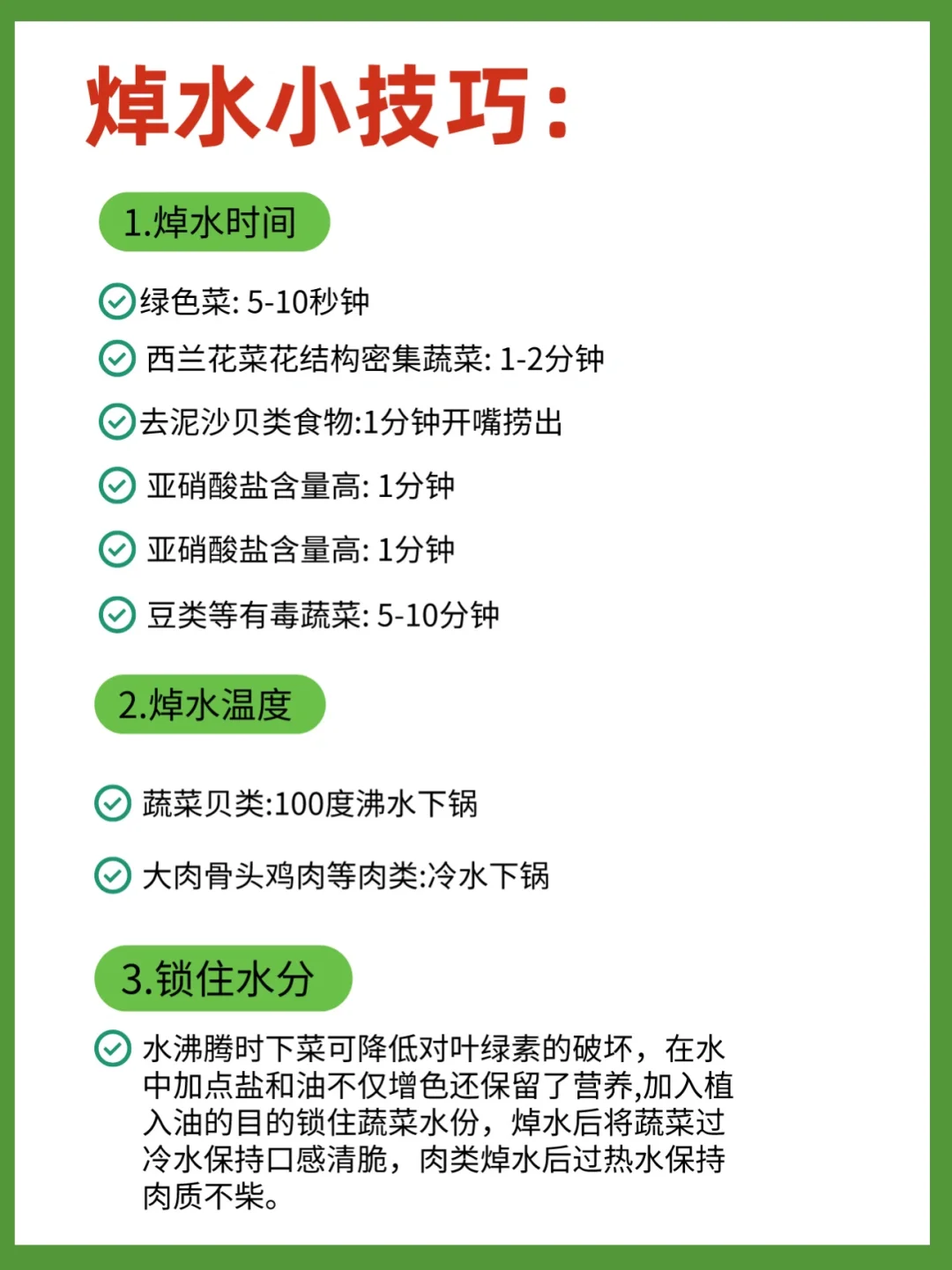 ✅口蔬菜贝类:100度沸水下锅