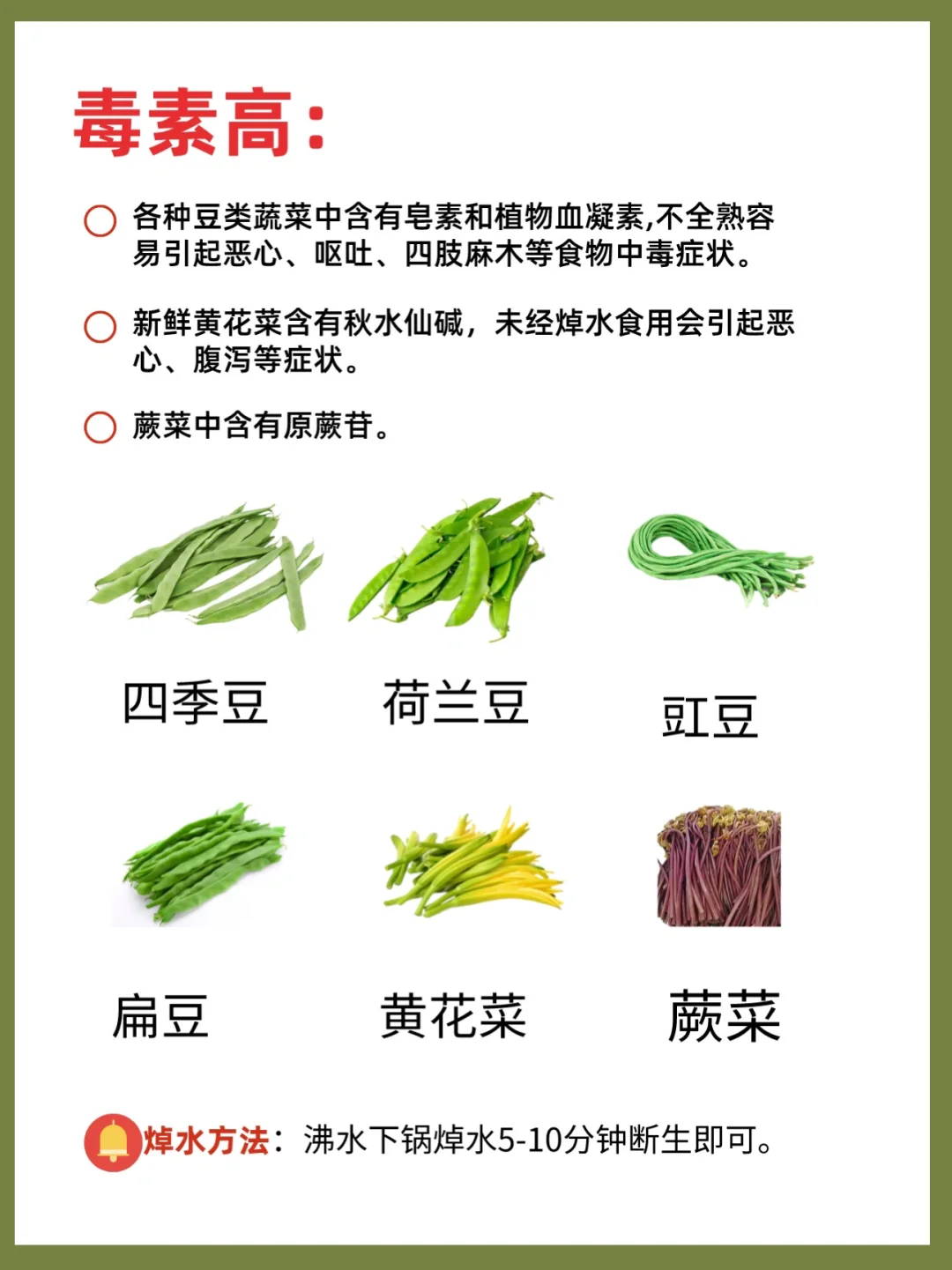 ✅可豆类等有毒蔬菜:5-10分钟