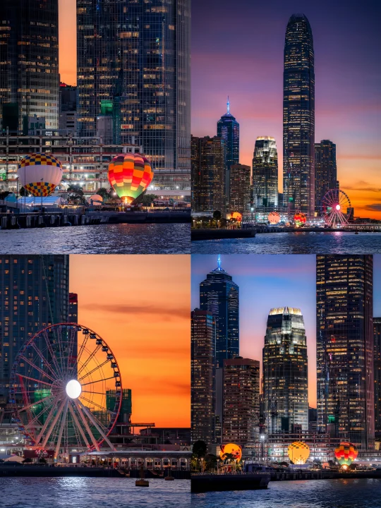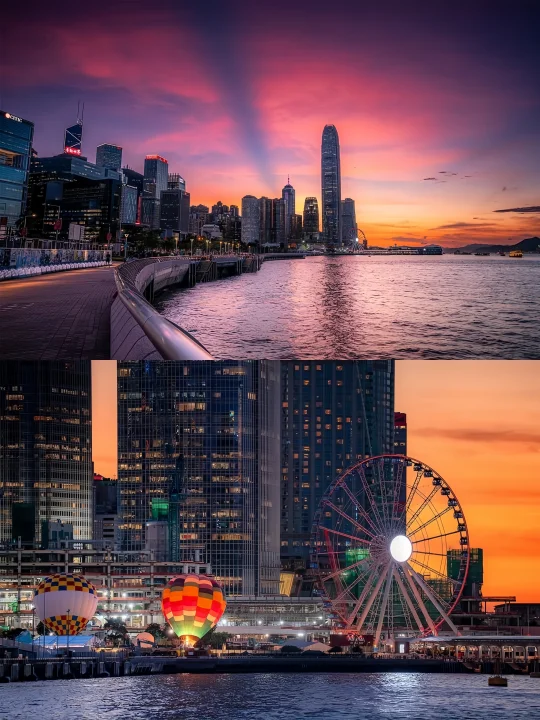 夕阳揉碎金光,云层翻涌成海 唯独少了飞上云端的热气球 不过在世纪晚霞和中环夜景的装点下 也别有一番美感