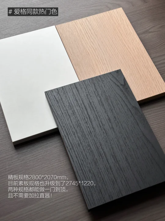 ❹精板规格2800*2070mm,目前素板规格也升级到了2745*1220,两种规格都能做一门到顶,且不需要加拉直器!