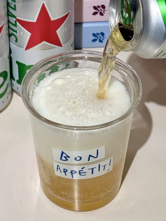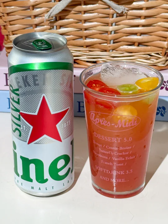 在店里喝过一口惊艳的番茄啤酒!! 竟然这么好复刻!!味道真的一模一样!!! 姐妹们都去试试看!! 冰块+啤酒+番茄汁+一丢丢海盐(可加可不加) 非常清新的番茄味!!很好入口! 番茄汁中和了啤酒的微苦,再加上朴朴超市上买的喜力星银啤酒~ 全麦酿造0添加,一拉开拉环就“呲啦”冒绵密泡,麦芽香直接窜鼻~ 金灿灿的酒液颜色也超级好看,重点是才4%vol 微醺不醉,真的意想不到的好喝~ 而且最近朴朴超市9周年庆,买喜力啤酒满59元就能参与0元换购,有买有送,关键是30分钟就能送到家,想喝不用等!