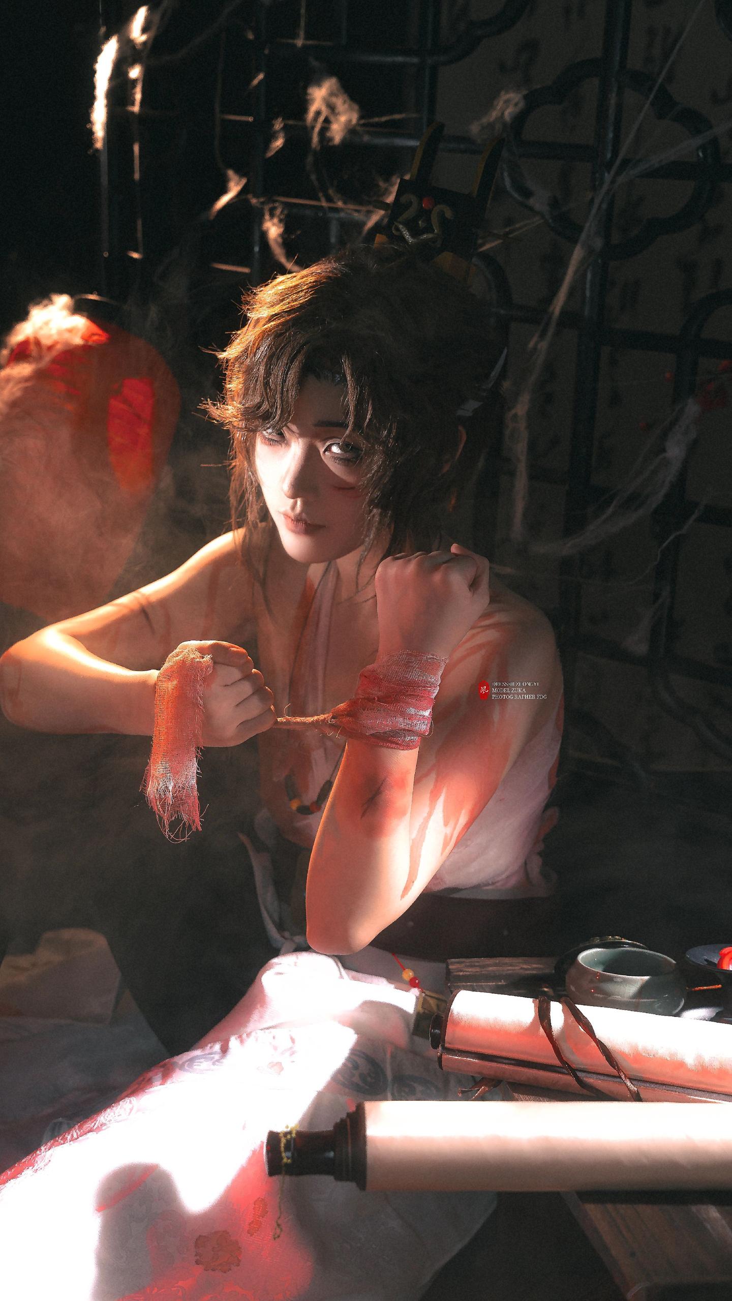 画皮娘子某,本工绘事。尝自描眉黛,铅粉扑额竟生鳞纹,原是爱美妖,胭脂着面即转青