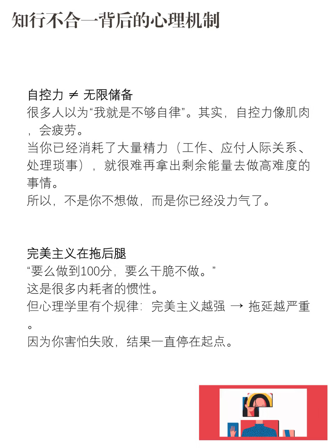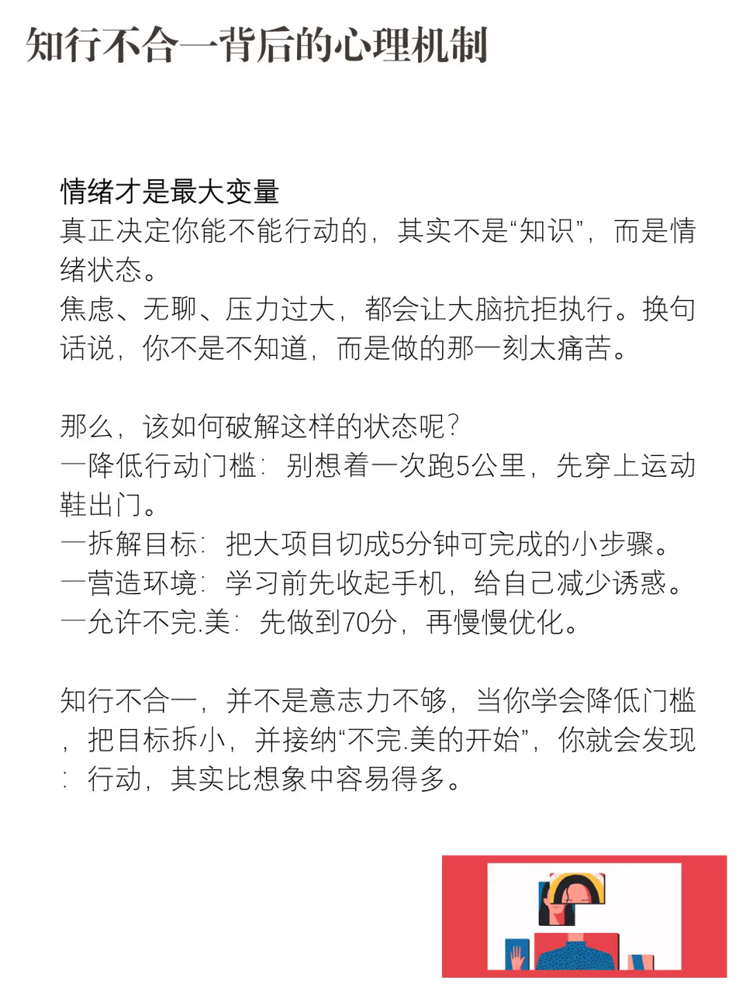 ‼️知行不合一,并不是意志力不够,当你学会降低门槛,把目标拆小,并接纳“不完.美的开始”,你就会发现:行动,其实比想象中容易得多。