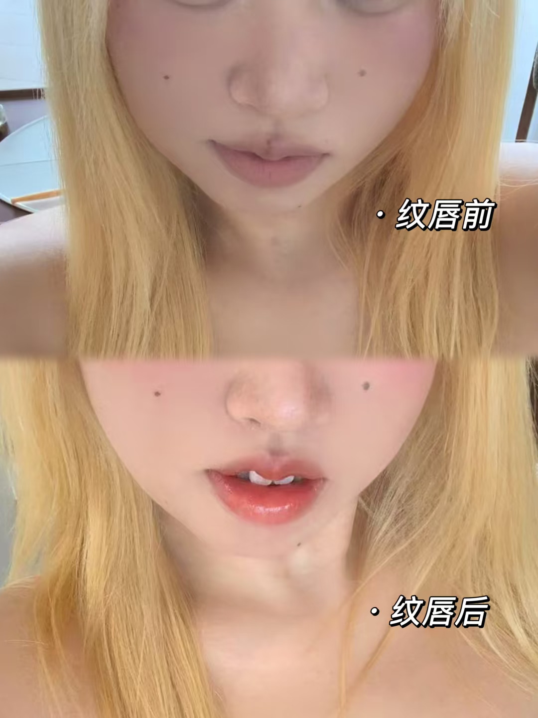 素颜唇色一直没气色 也只敢涂一些裸色口红 太羡慕别人红唇了!并且天生气血唇色真的太招人喜欢 素颜看着也舒服🤓 被姐妹拉去纹唇之后 被效果惊艳到了!我的妈呀 谁不涂口红都可以自然拥有粉嘟嘟的妈生唇了 好喜欢俺现在的唇色🥰🥰👄