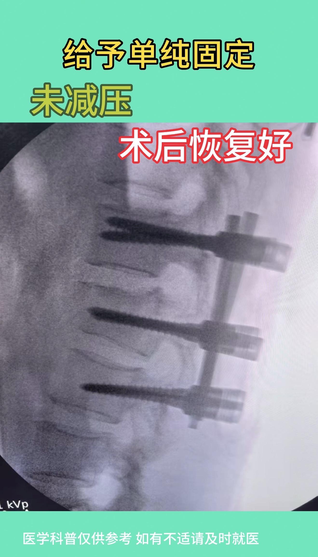 50多岁女性,在家干农活时从凳子上摔下,腰1椎体骨折,手术后复位理想...