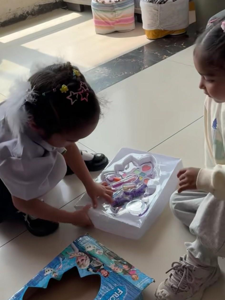 真好啊,同样都是先后从巴基斯坦回来的两个小姐妹,河南的一梦跟山东的文文,今天终于是见面了。 可能是之前在巴基斯坦,两个人就认识的缘故,从一开始见面一梦跟文文,就根本看不出来她俩有什么陌生感,无论是文文,还是一梦反而都是自带亲切感。 一梦拿到她妈妈米歇尔买的玩具以后,也是开心的一起跟文文分享,一起跟文文玩耍,俨然就是一副大姐姐的模样。 也不知道一梦跟文文,到底谁的年龄大一些。#秋日领花茶#