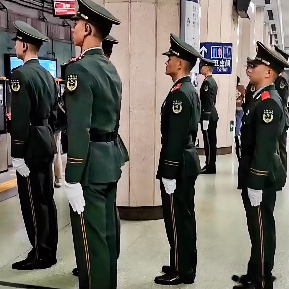 为了阅兵做保障,在某地铁站里,武警战士在哨位上交接班,一丝不苟,动作严谨利索,毫不懈怠。 在另外一个站里两个下岗的哨兵横列成排,步伐整齐,表情认真郑重。 种种细节让我大为感慨,一个军队的战斗力在细微之处体現得更明白准确,阅兵场上万众瞩目,几个小时的演练虽然也很不容易。但是在看不到的地方,普通战士对纪律的执行仍然一丝不苟,这才是更值得肯定和赞许的。因为这才是这支军队不可战胜的真正基础。