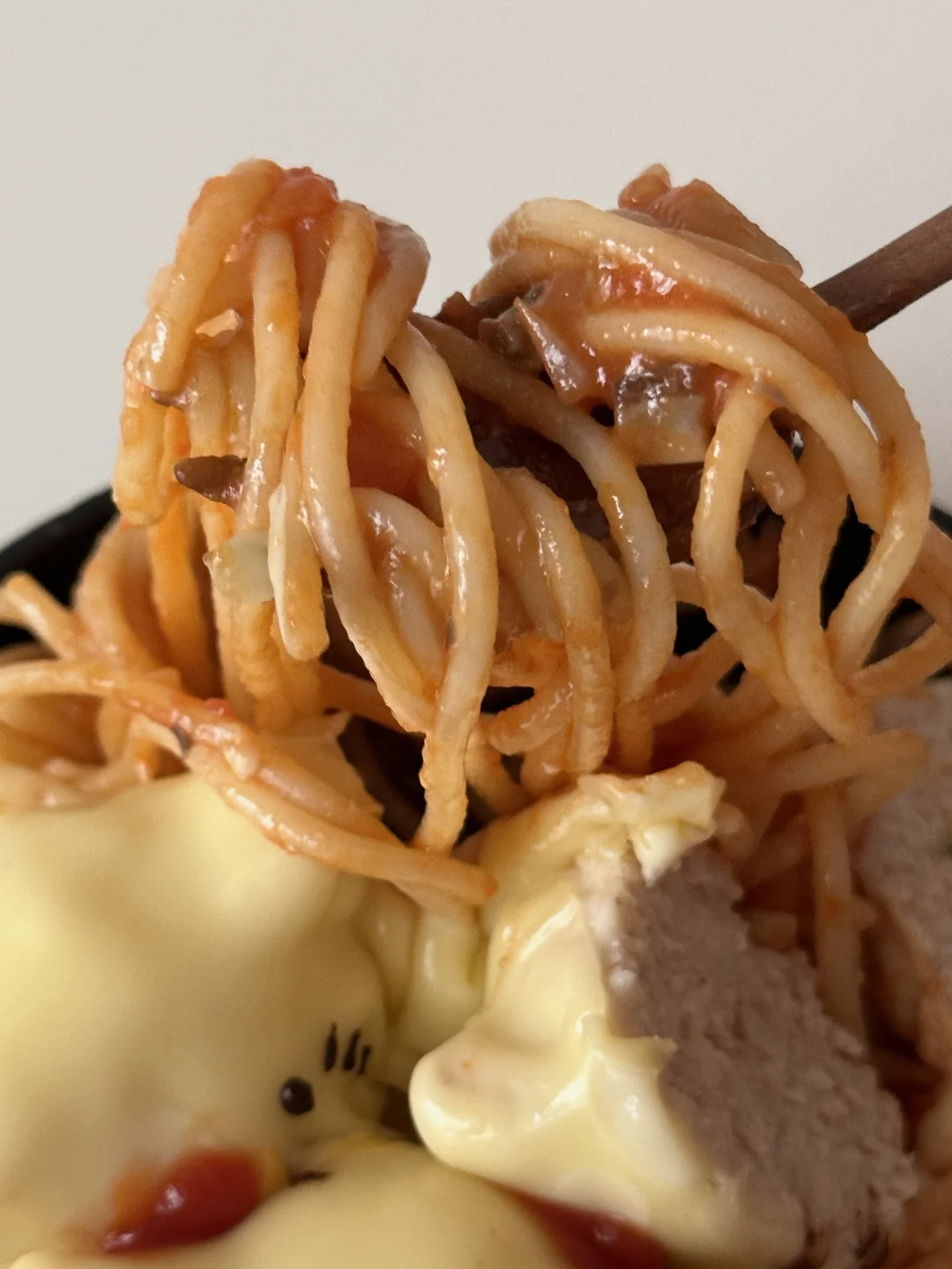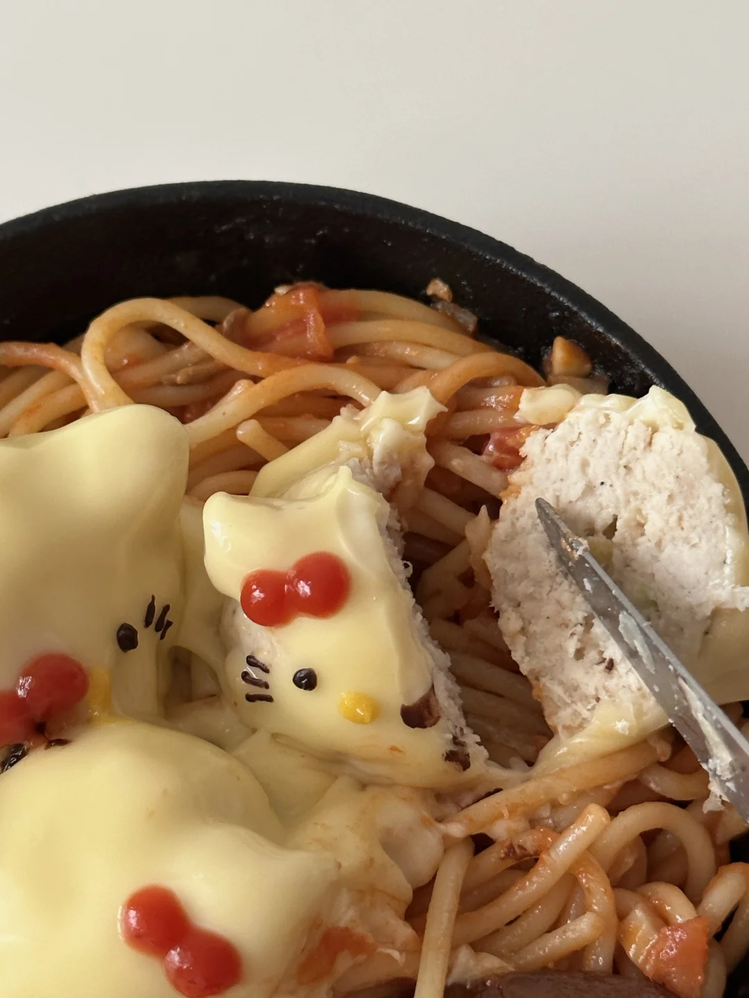 浓郁的番茄酱香,拉丝的可爱芝士肉丸,狠狠享受嗦面的幸福吧~[派对R]